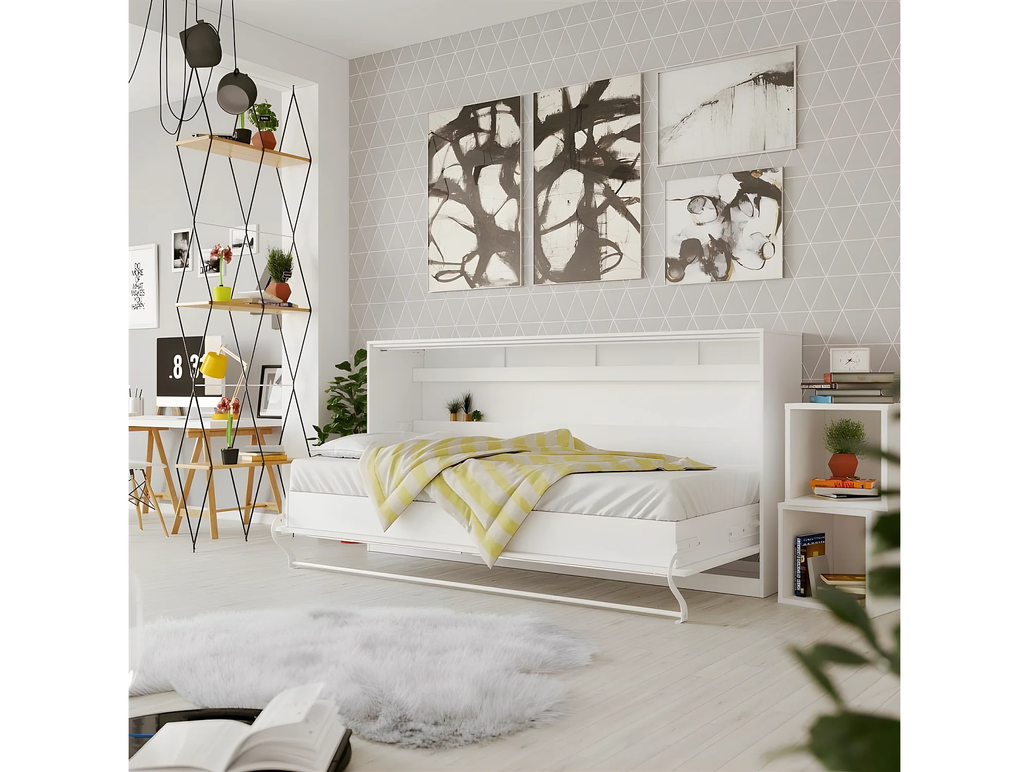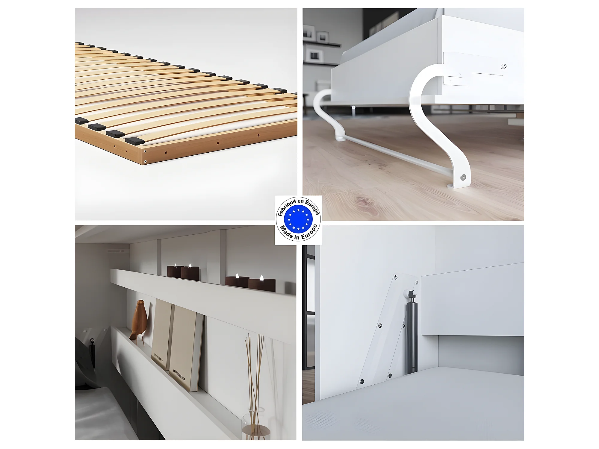 Armoire Lit escamotable 90x200cm Supérieur Horizontal Lit Rabattable Lit Mural Blanc/blanc