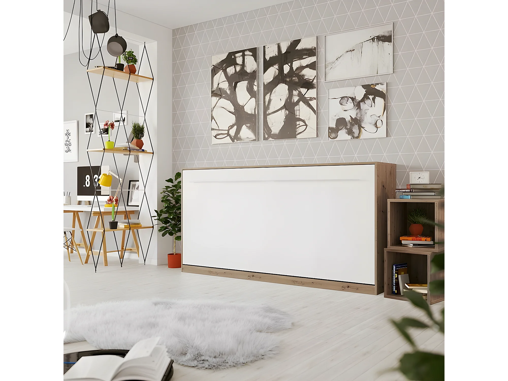 Armoire Lit escamotable 90x200cm Supérieur Horizontal Lit Rabattable Lit Mural Chêne Sauvage/blanc