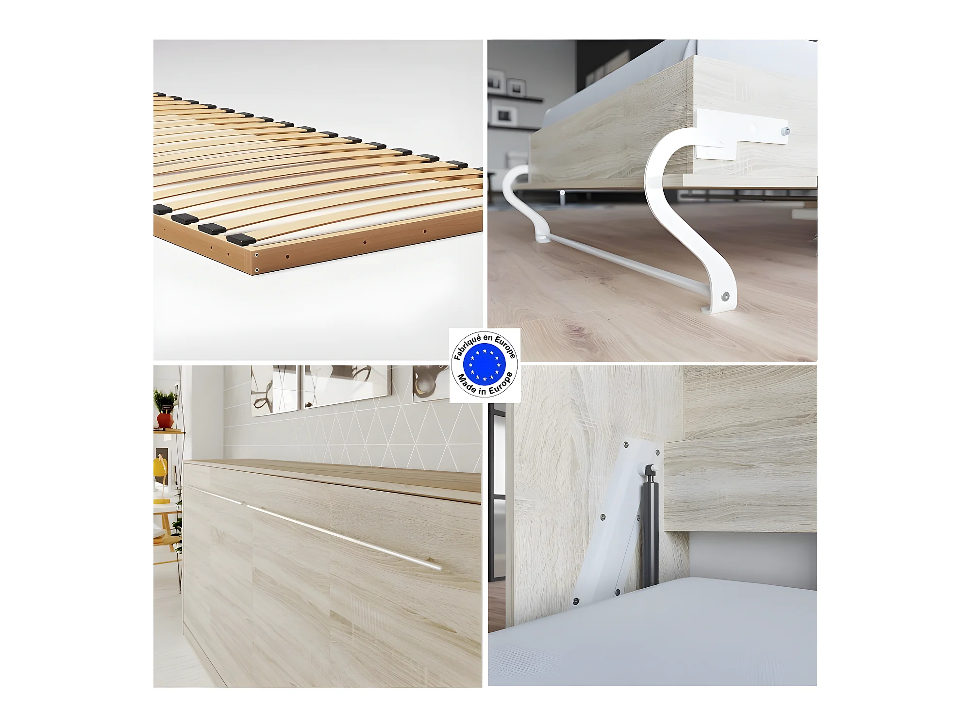Armoire Lit escamotable 90x200cm Supérieur Horizontal Lit Rabattable Lit Mural Chêne Sonoma//Chêne Sonoma