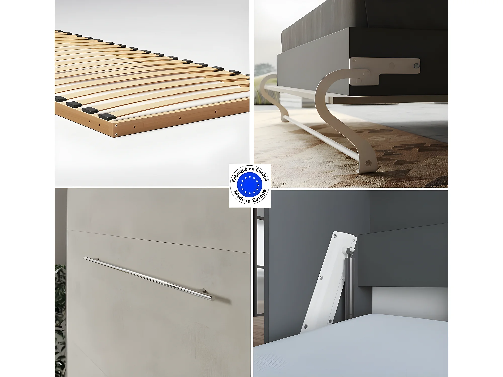 Armoire Lit escamotable 90x200cm Vertical Lit Rabattable Lit Mural Supérieur Anthracite/Béton