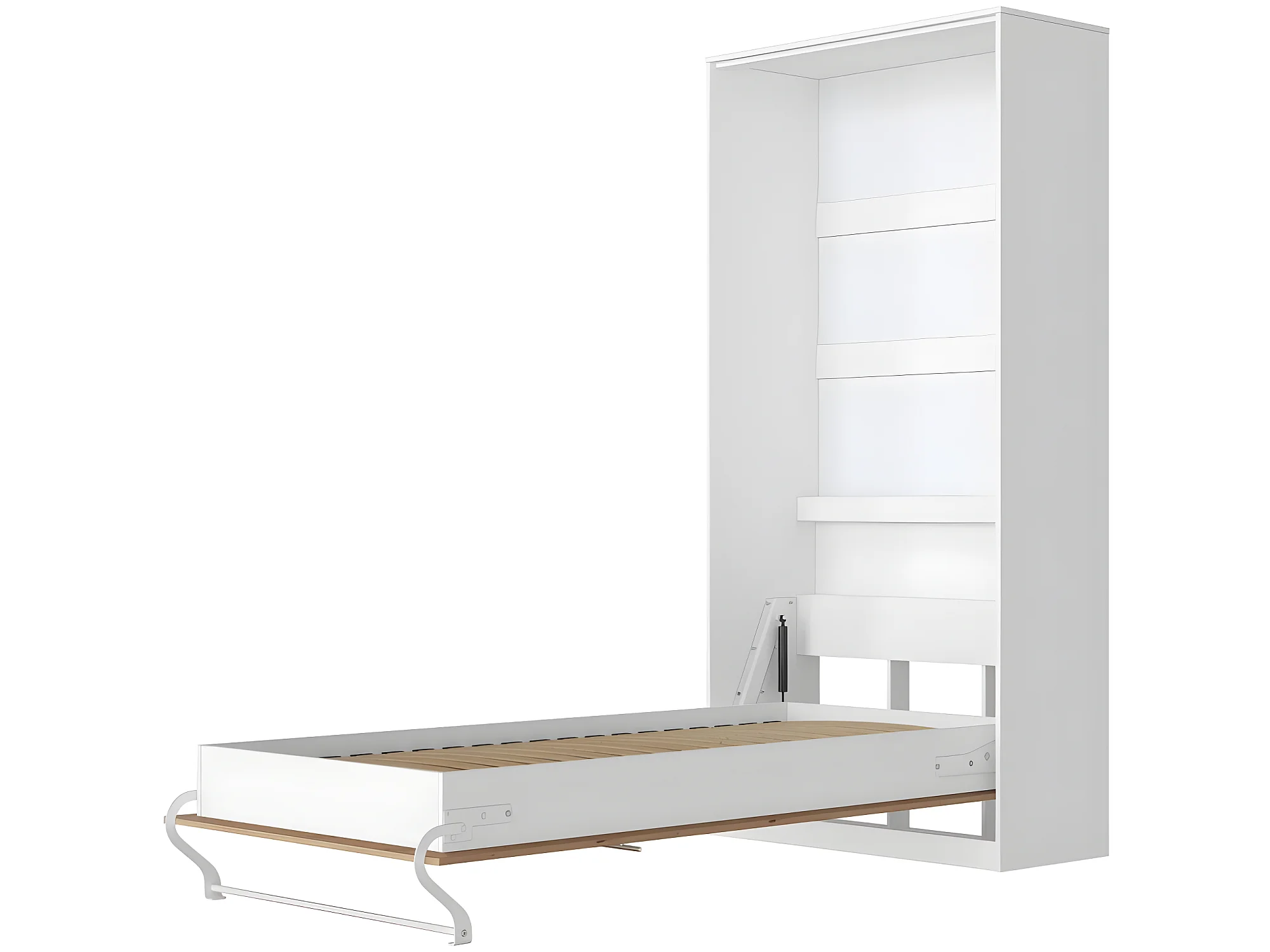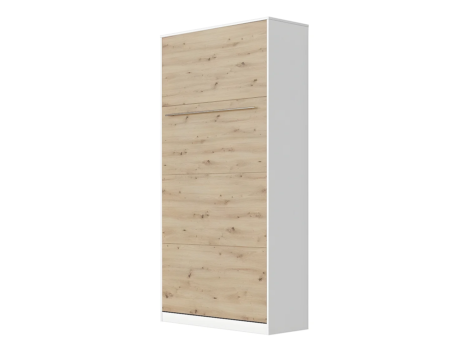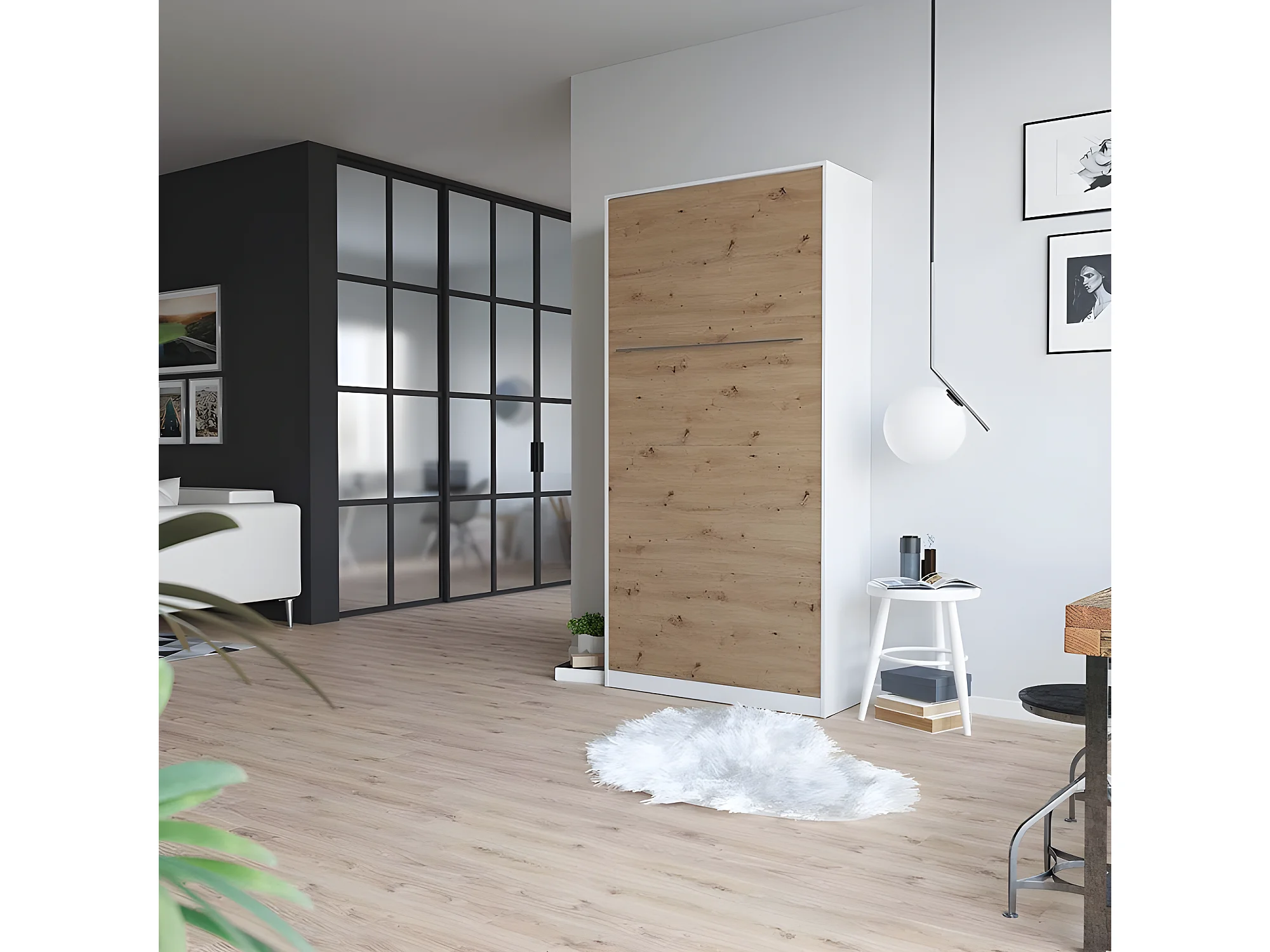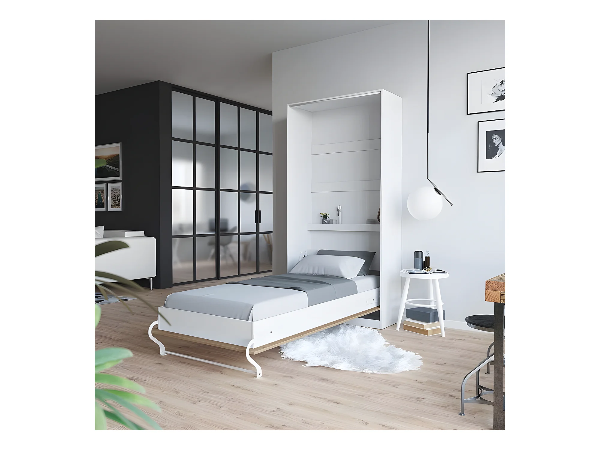 Armoire Lit escamotable 90x200cm Vertical Lit Rabattable Lit Mural Supérieur Blanc/Chêne Sauvage