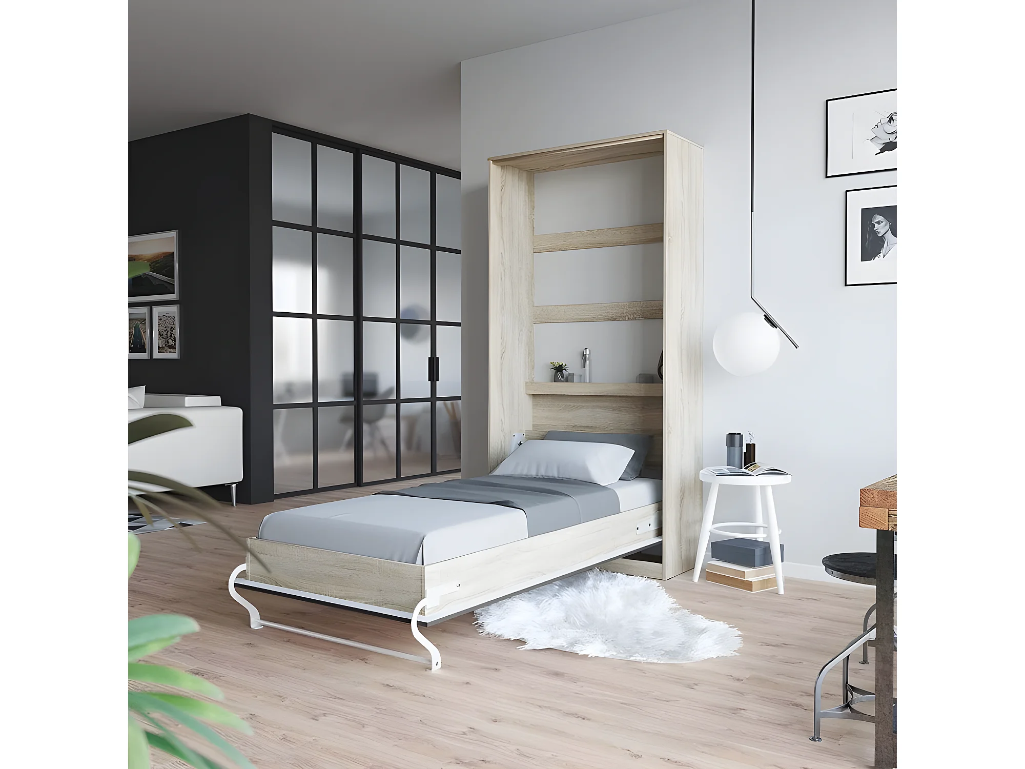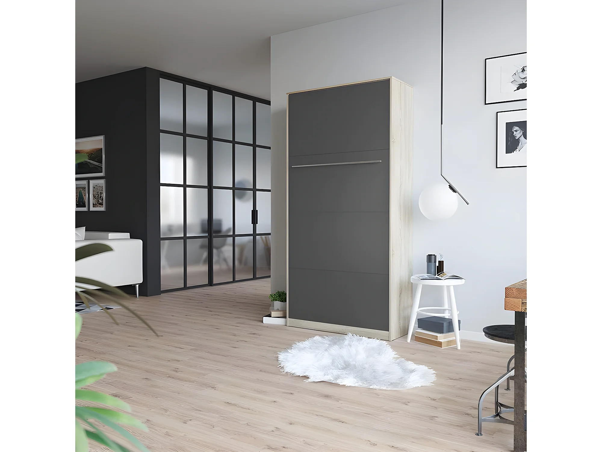 Armoire Lit escamotable 90x200cm Vertical Lit Rabattable Lit Mural Supérieur Chêne Sonoma/Anthracite