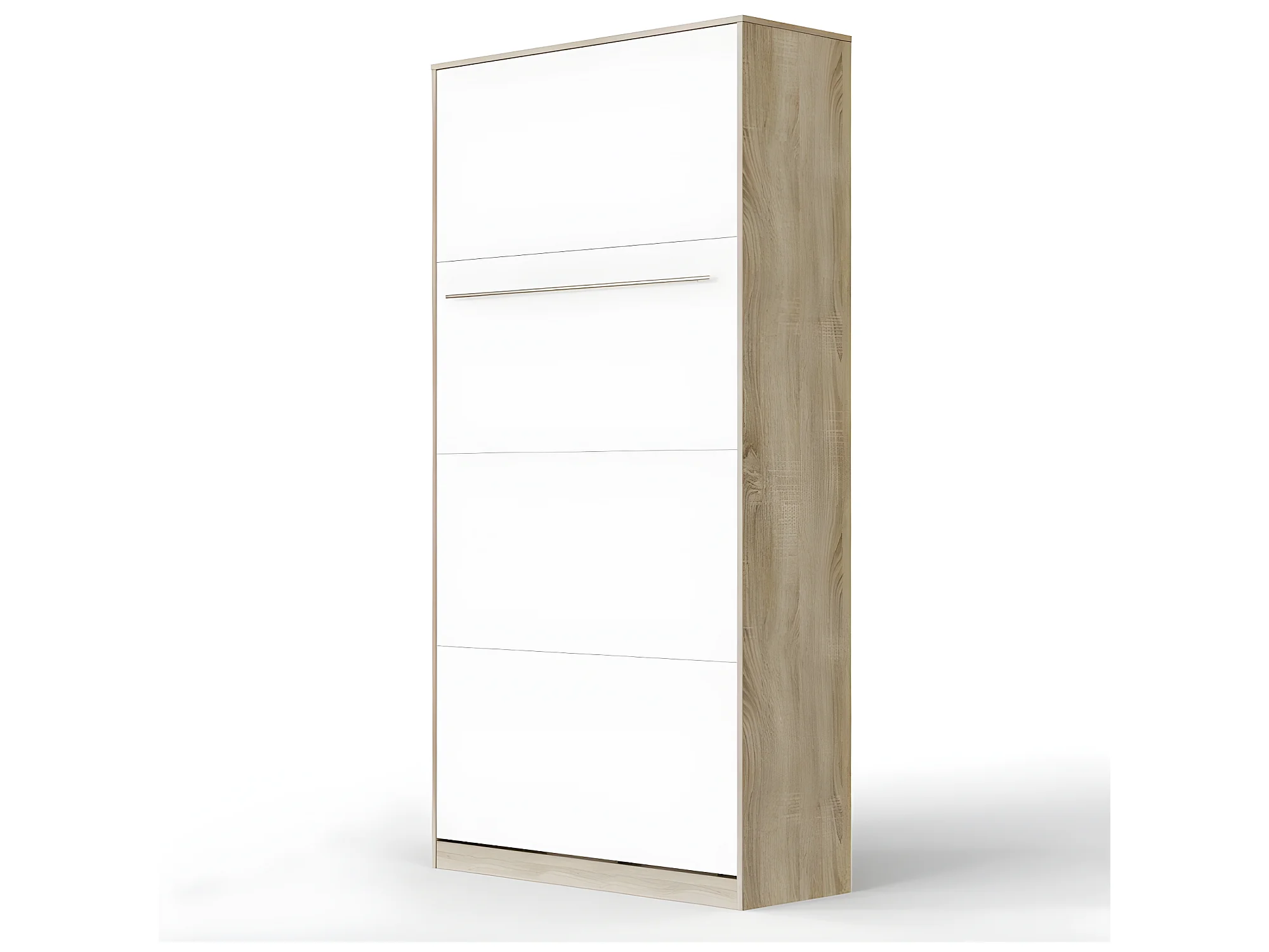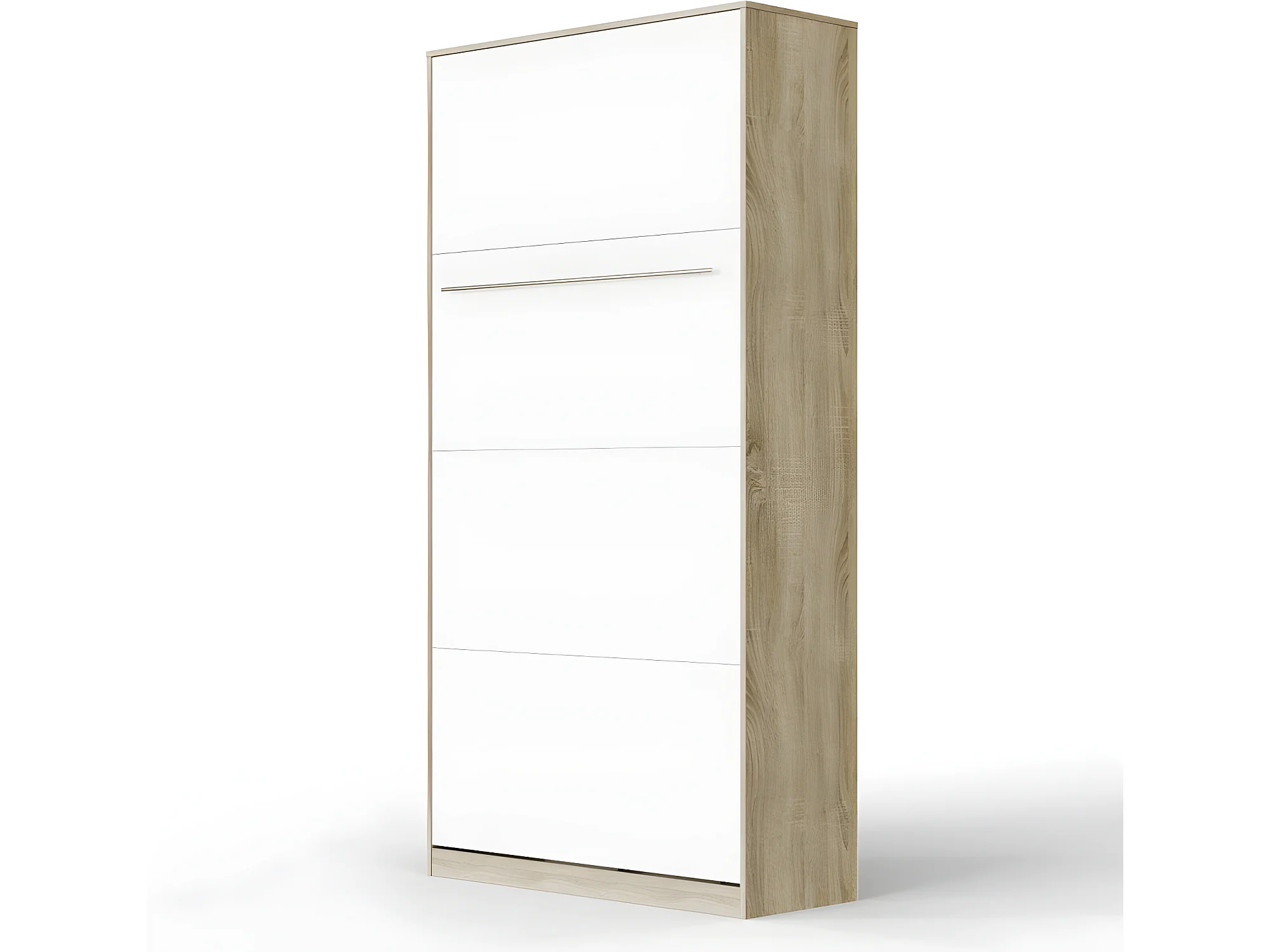 Armoire Lit escamotable 90x200cm Vertical Lit Rabattable Lit Mural Supérieur Chêne Sonoma/Blanc