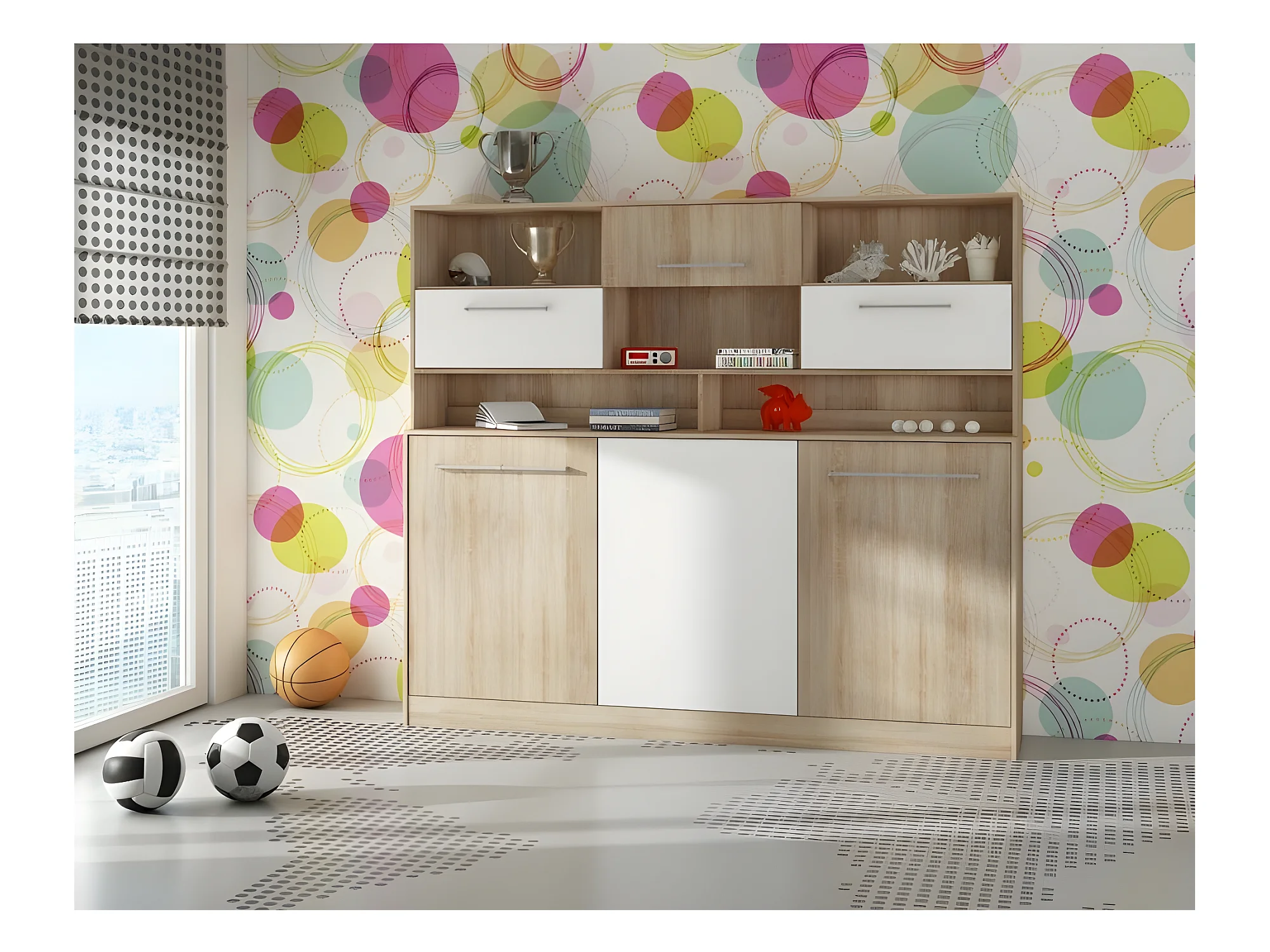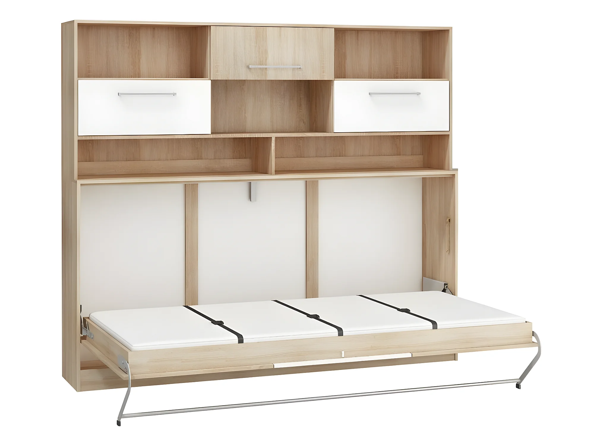 Armoire Lit escamotable Horizontal 90x200 cm avec étagères Sonoma blanc Lit Rabattable Lit Mural Roddy