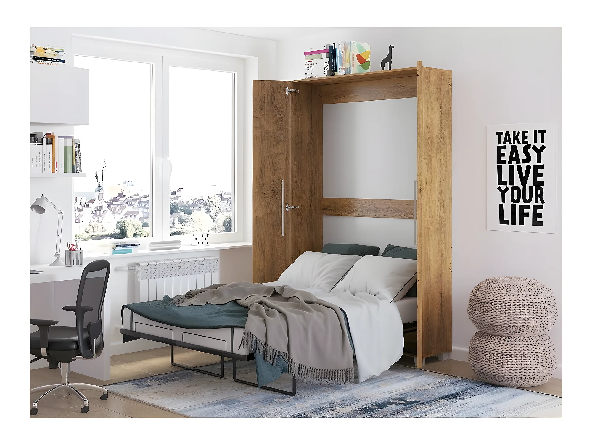 Armoire Lit escamotable Vertical 120x200 cm Or Artisan avec porte Lit Rabattable Lit Mural Todor