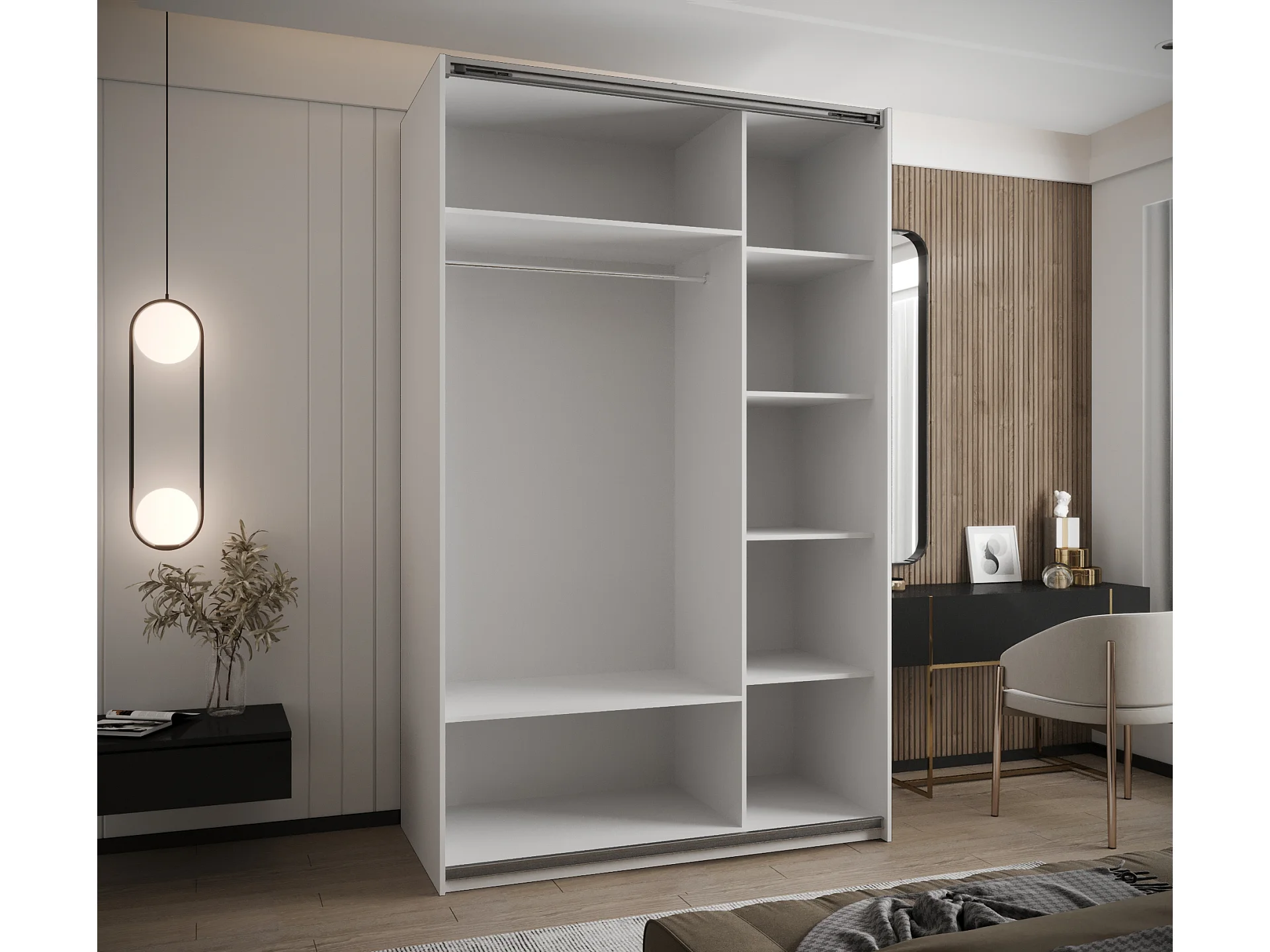Armoire Lux 2 245,5/150/64 (Blanc/Noir/Argent)