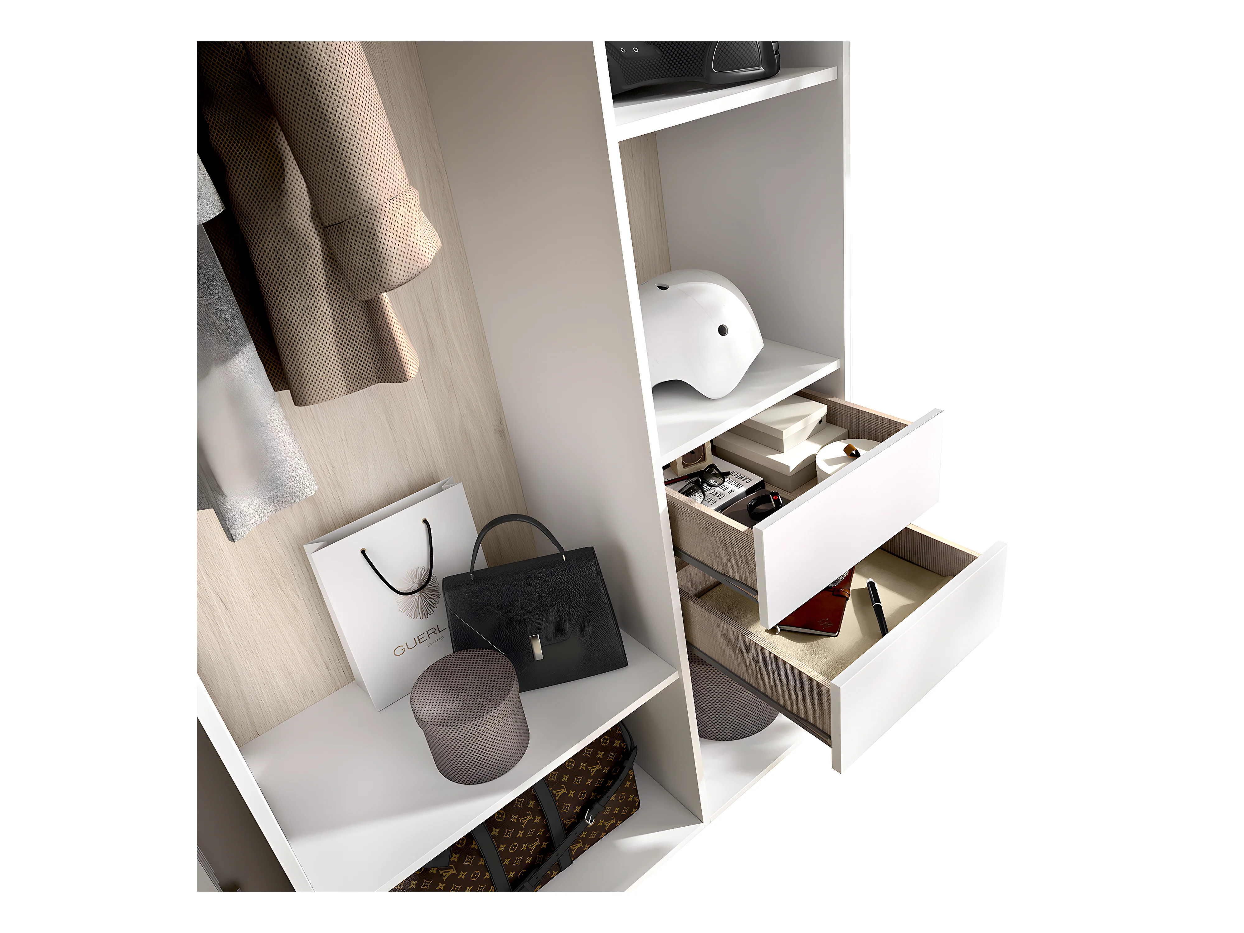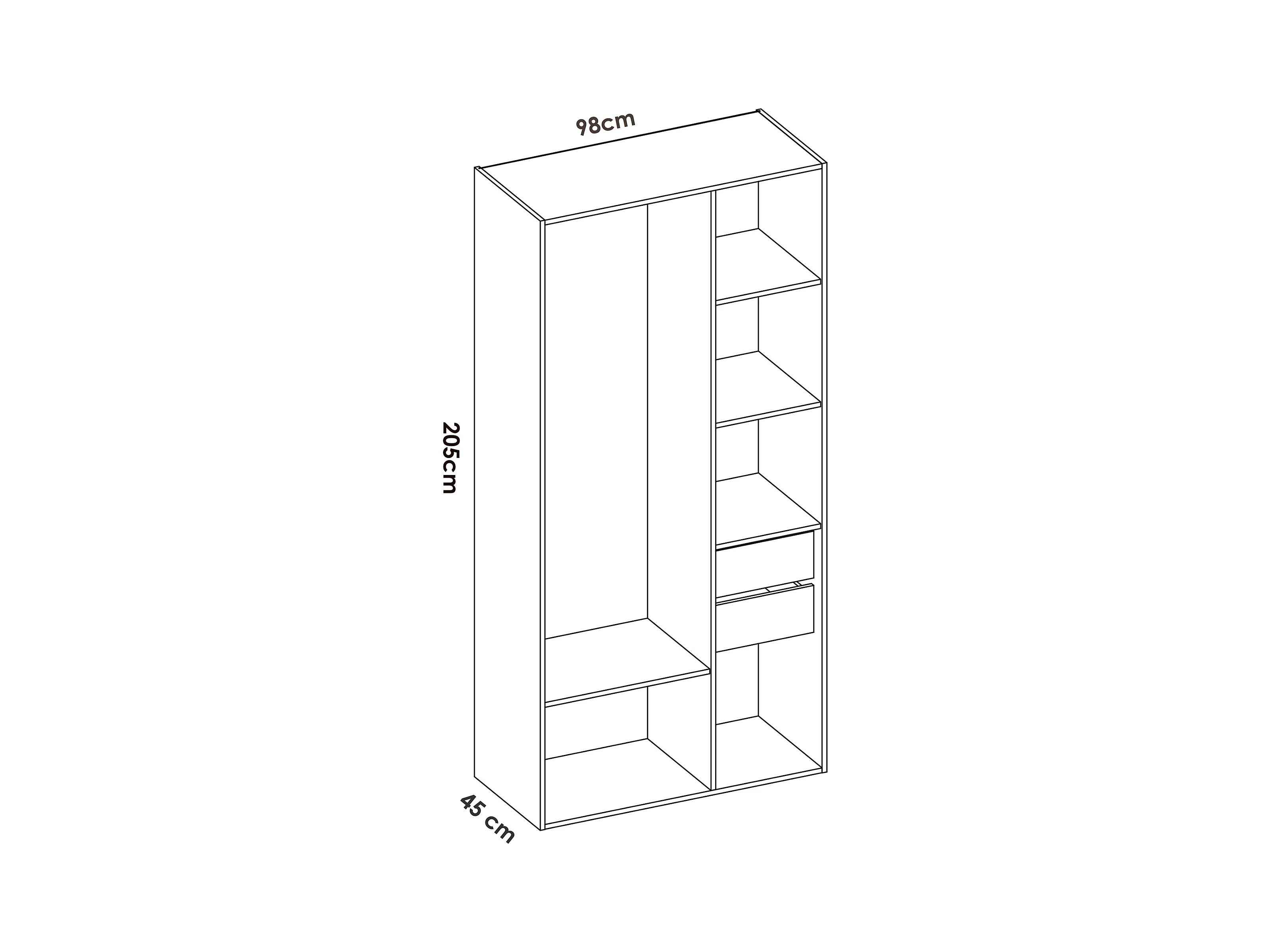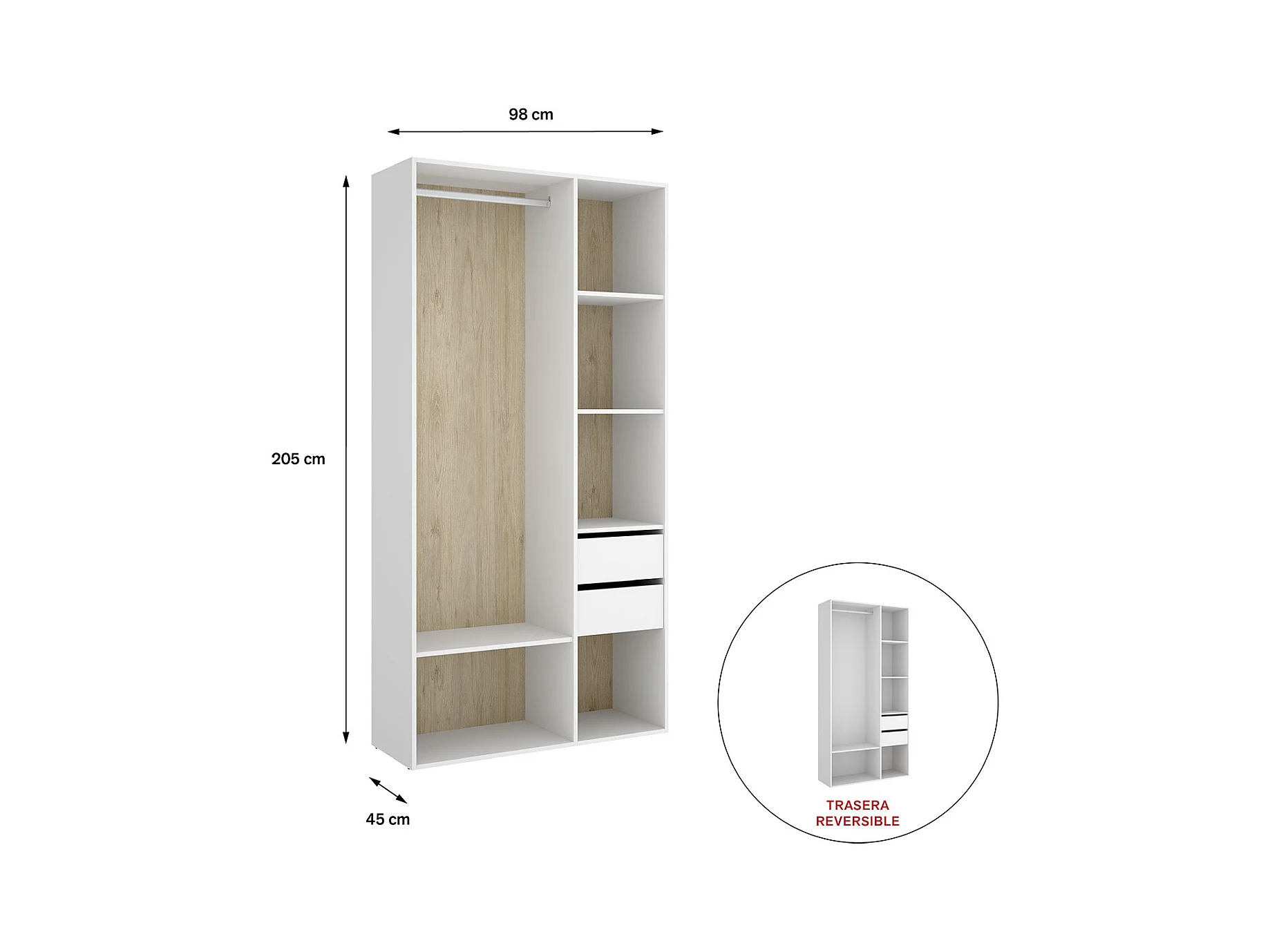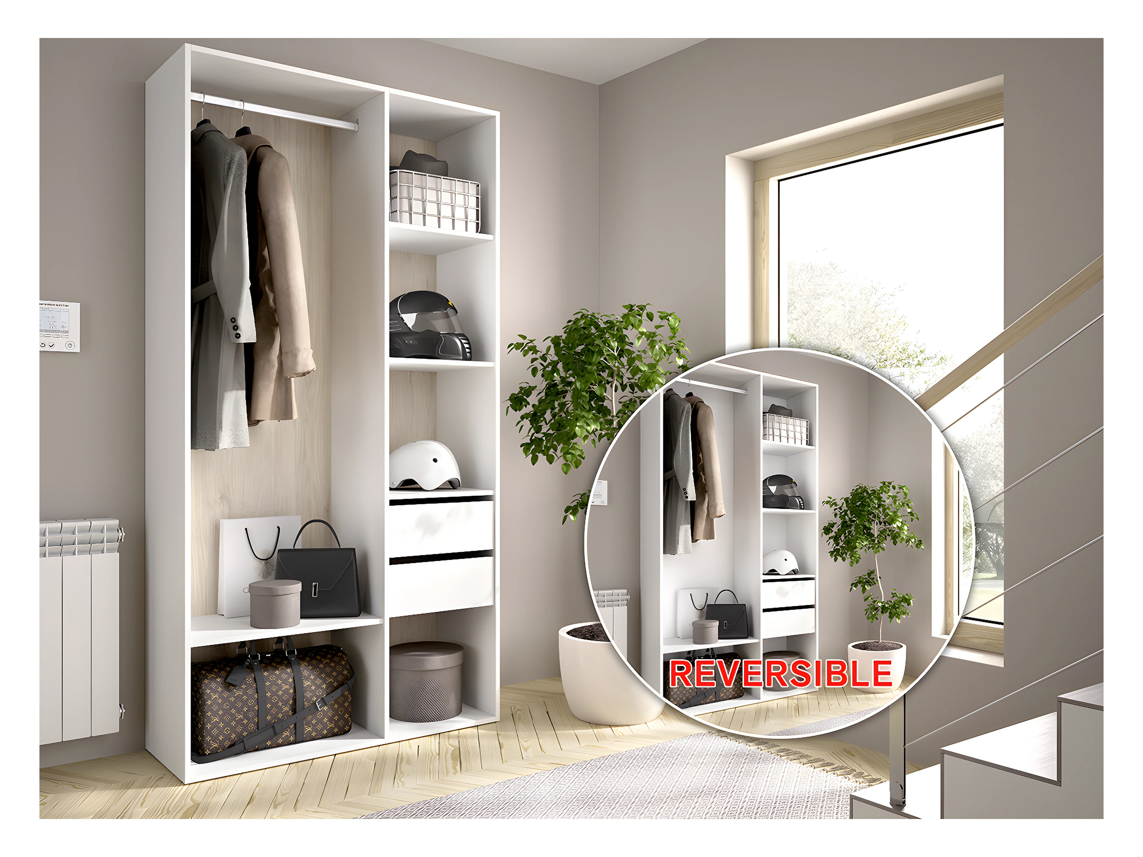 Armoire, meuble de rangement avec 2 tiroirs coloris chêne naturel, blanc - Longueur 98 x Profondeur 45 x Hauteur 205 cm