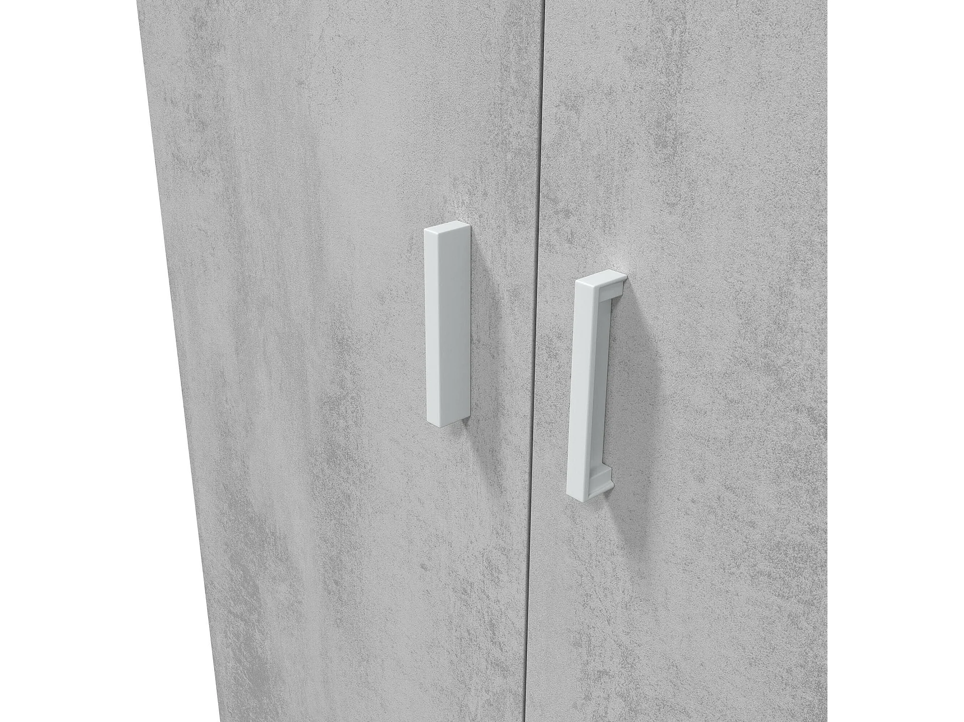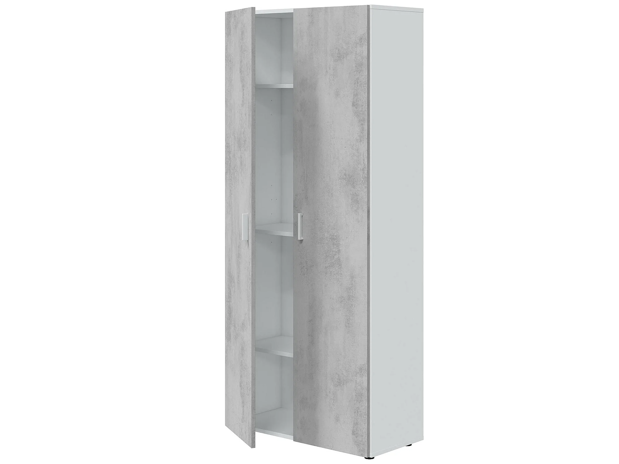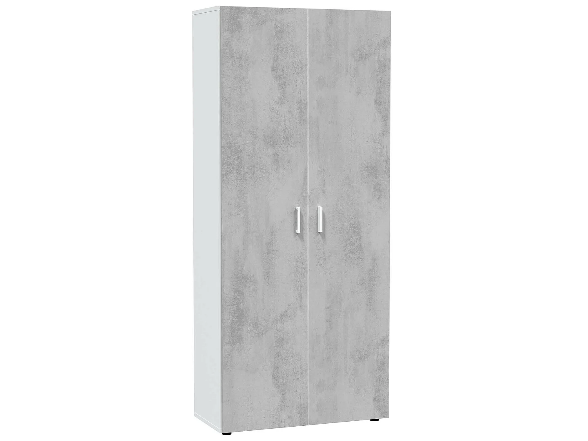 Armoire  meuble de rangement en panneau de particules mélaminé coloris blanc mat et gris ciment - Hauteur 182 x Longueur 80 cm x Profondeur 37 cm