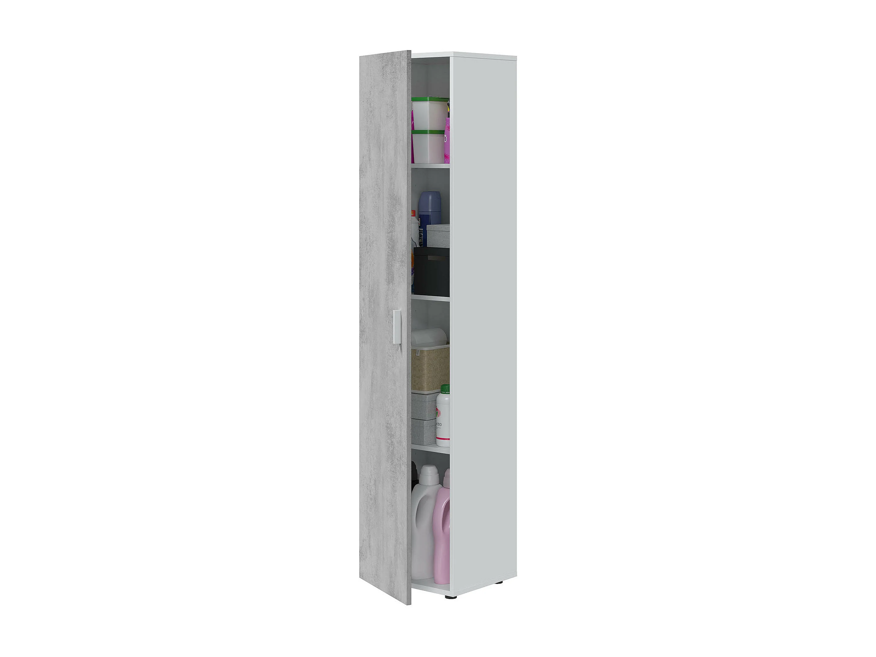 Armoire meuble de rangement en panneau de particules mélaminé couleur blanc mat et gris ciment - Longueur 41 x Hauteur 182 x Profondeur 37 cm