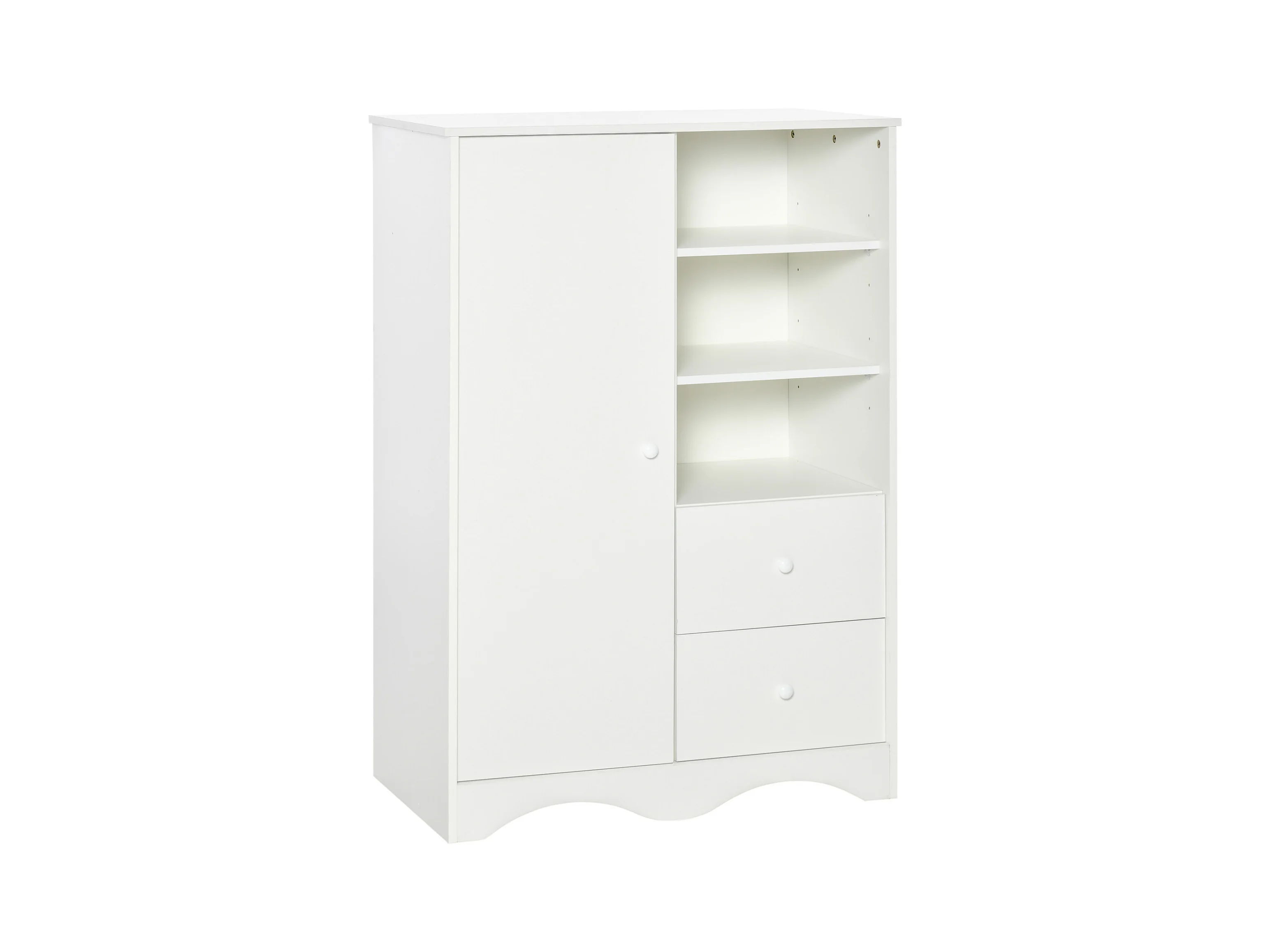 Armoire - meuble multi-rangements - placard porte 5 étagères, 3 niches, 2 tiroirs - panneaux de particules blanc