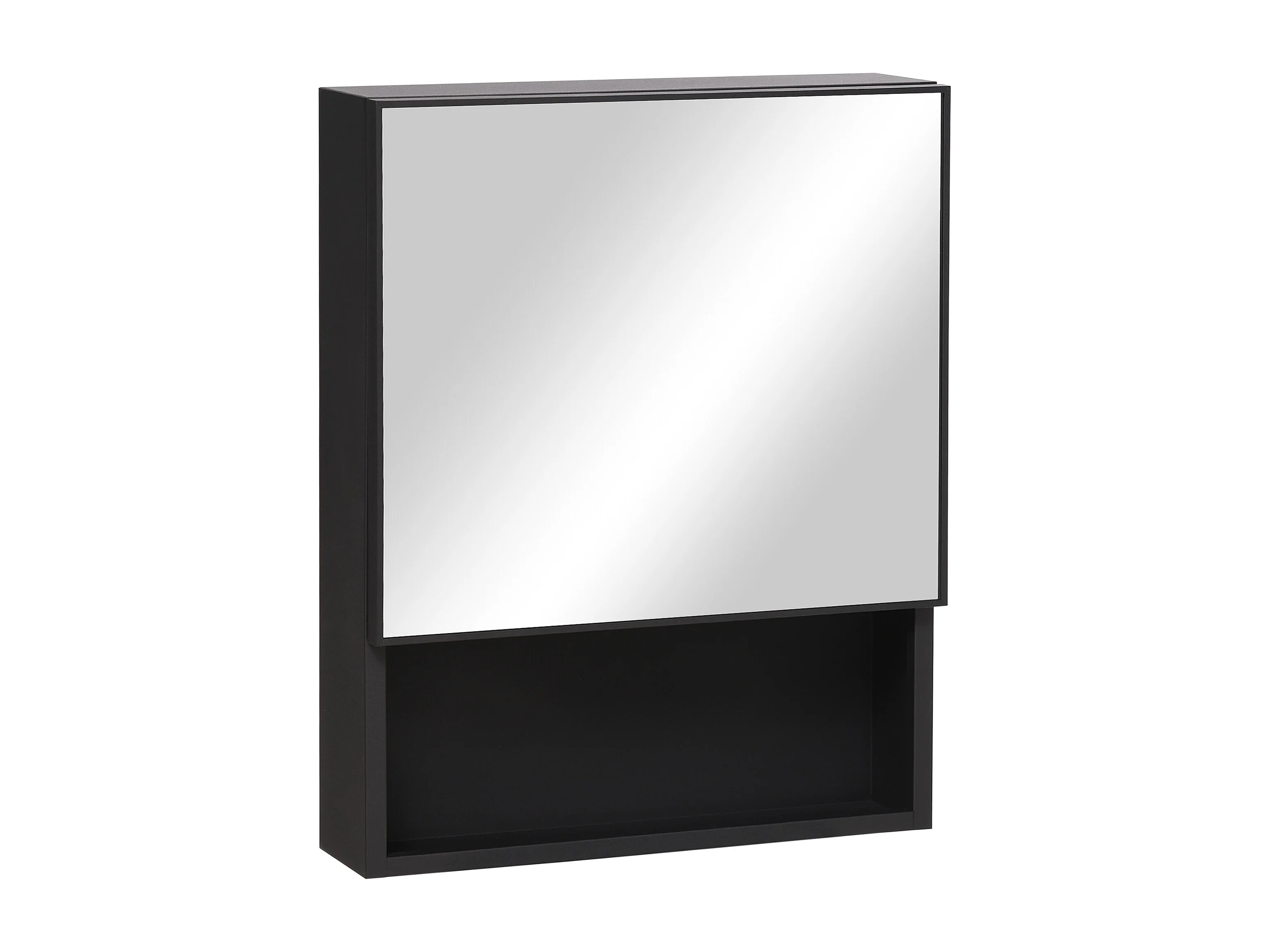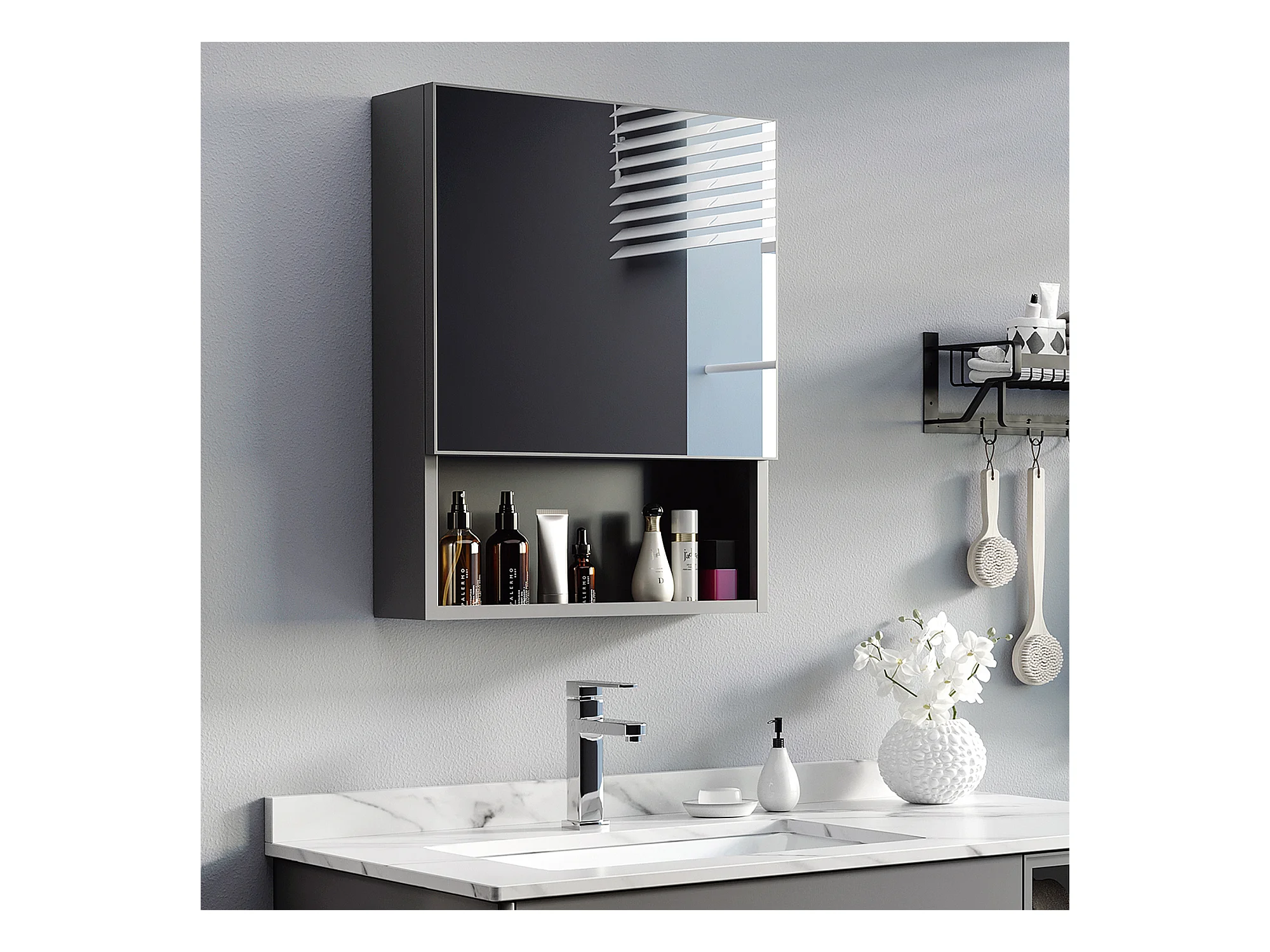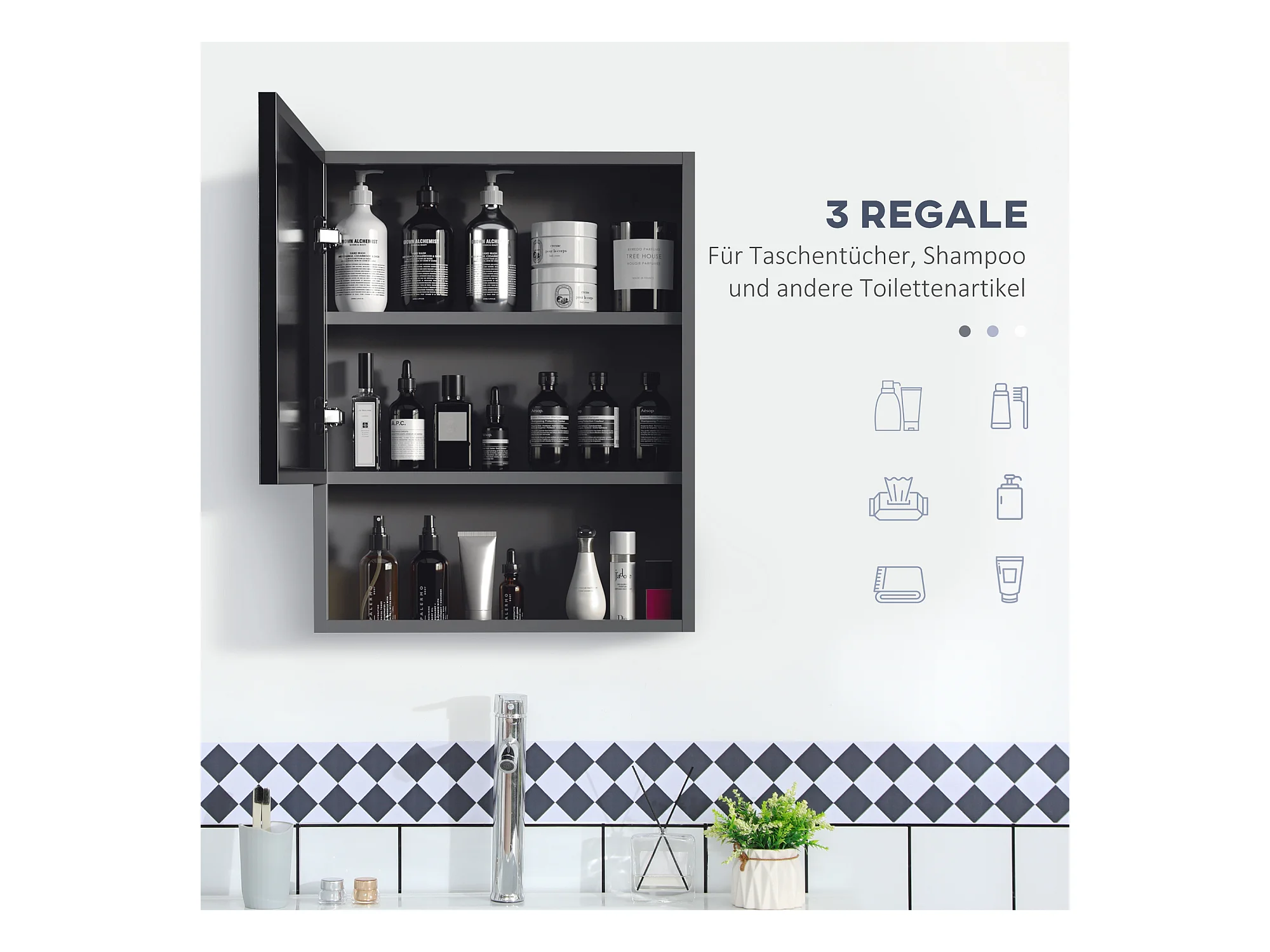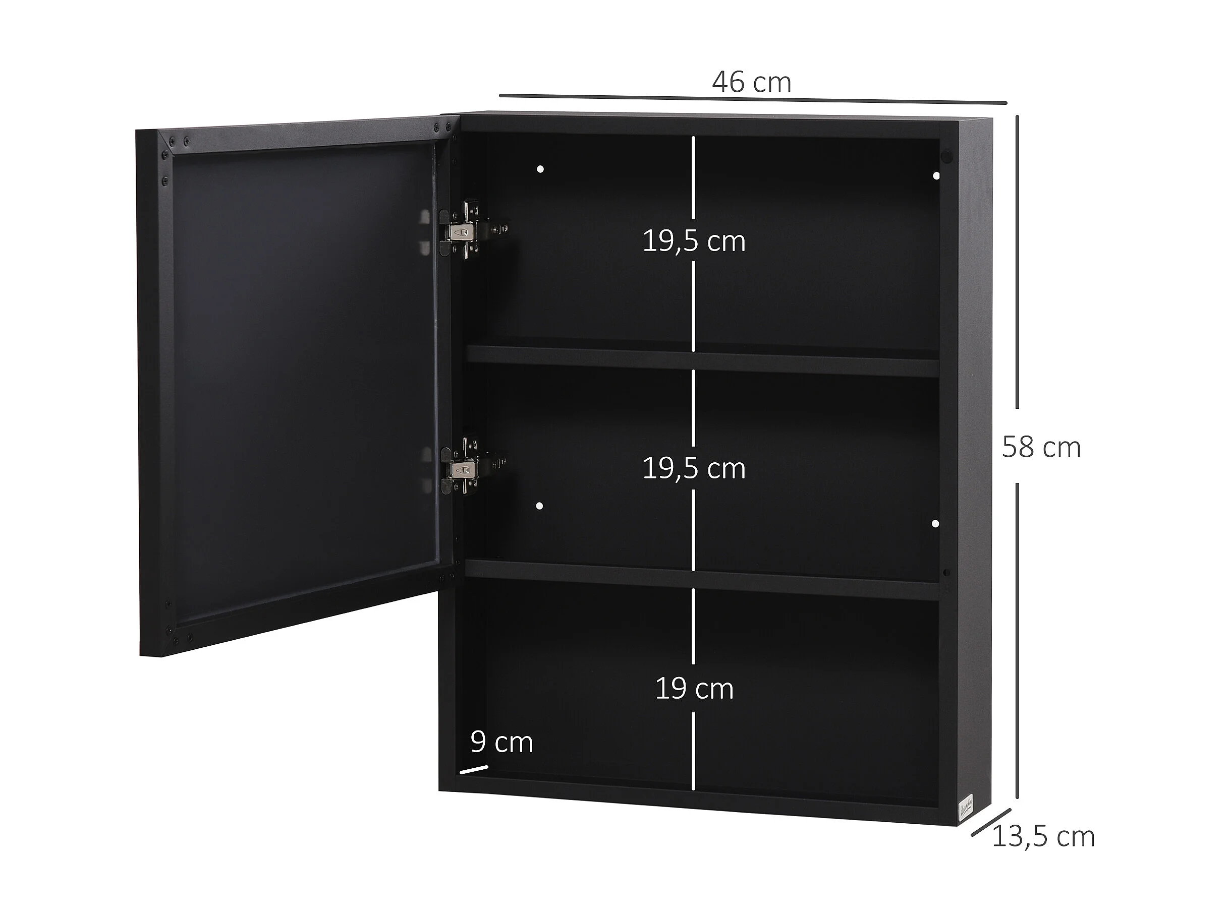 Armoire miroir de salle de bain avec étagères, acier inoxydable, noir (46x13.5x58 cm)