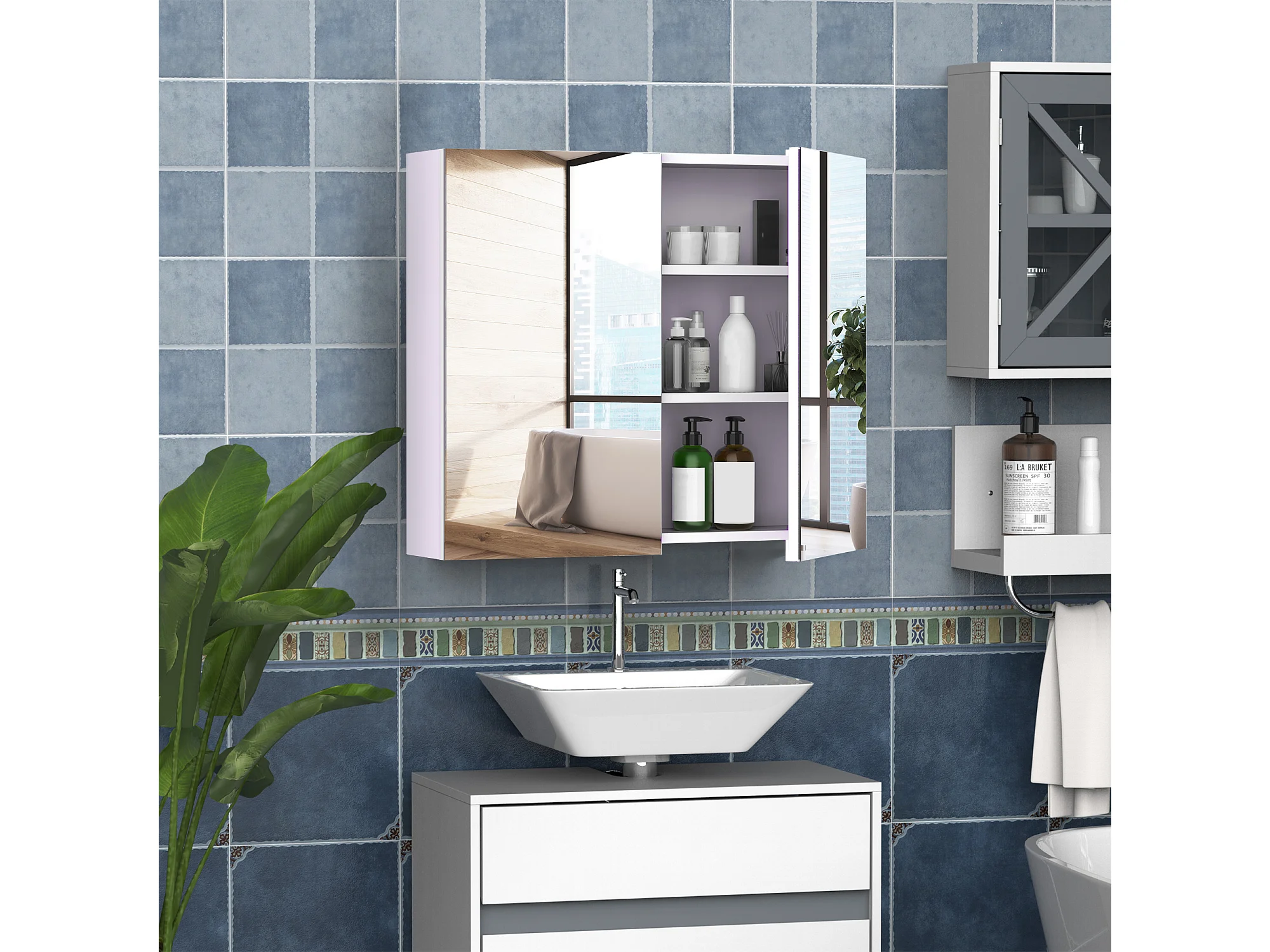Armoire miroir de salle de bain armoire murale 3 portes 2 étagères dim. 70L x 15l x 60H cm MDF blanc