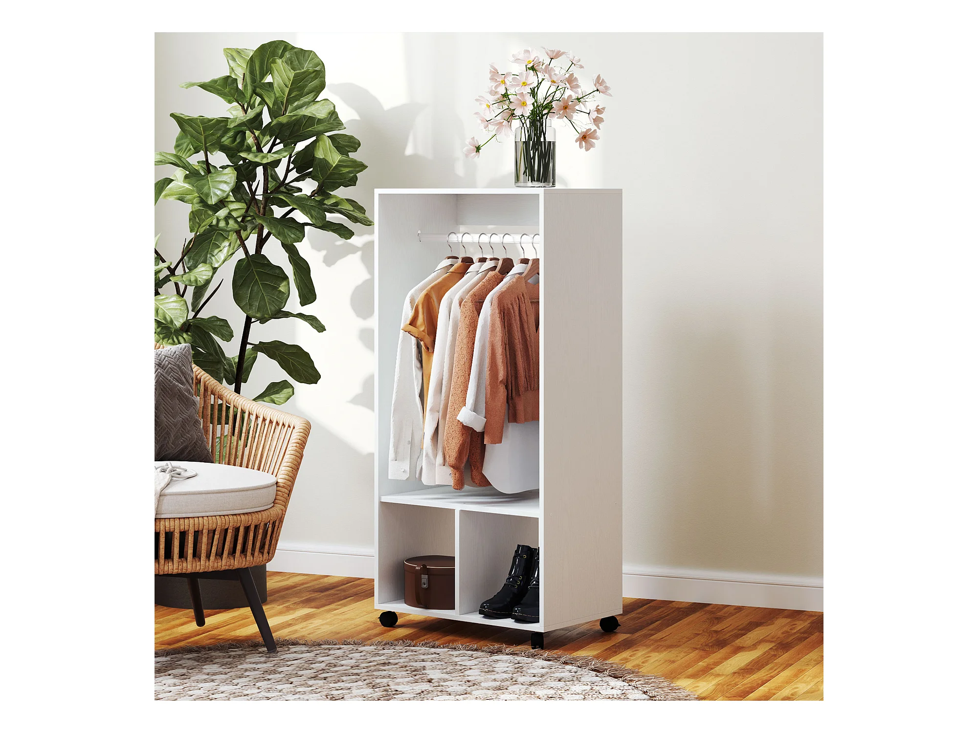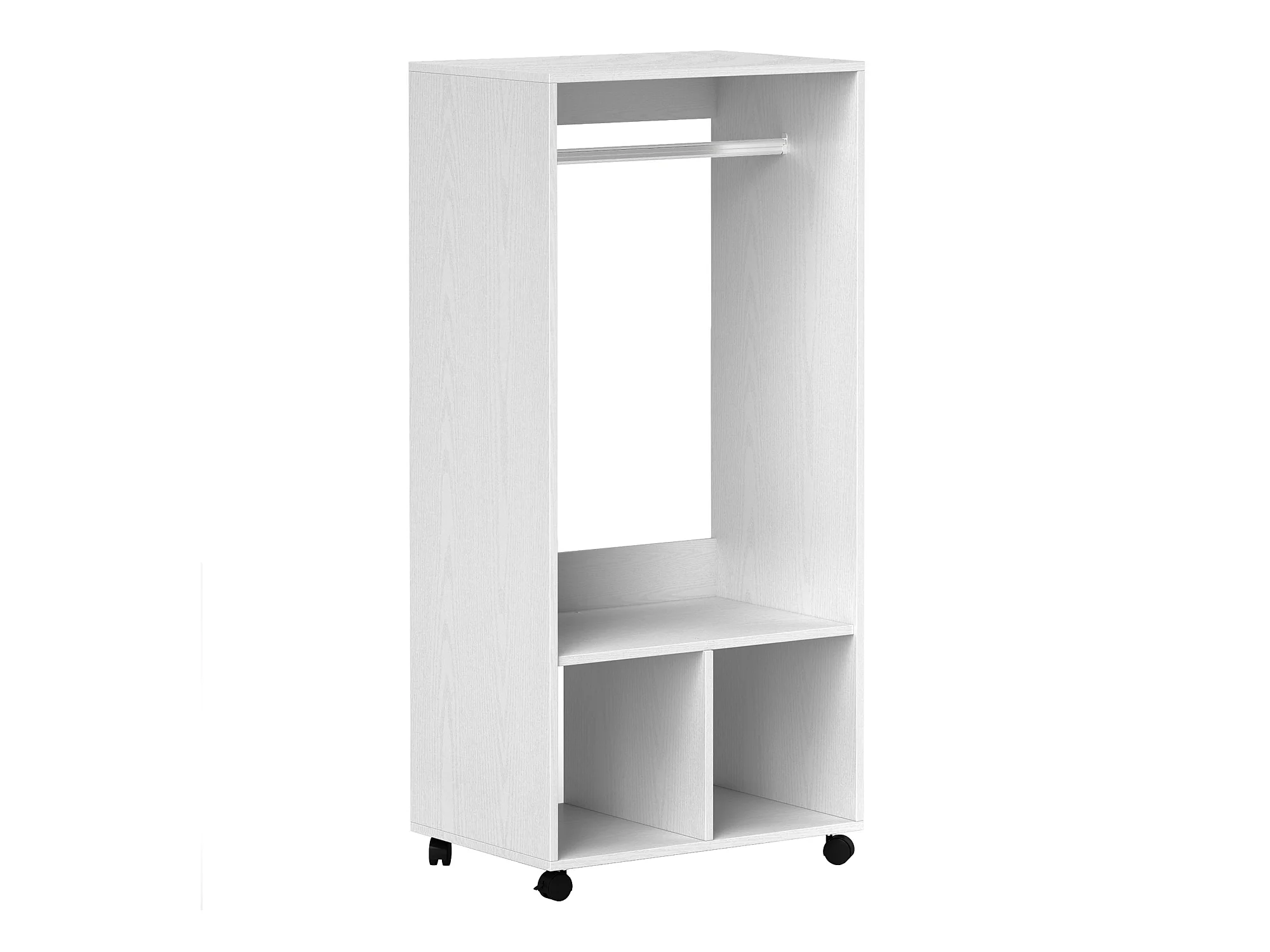 Armoire mobile à roulettes, avec étagères et barre de penderie, bois mélaminé, blanc (80x40x128 cm)