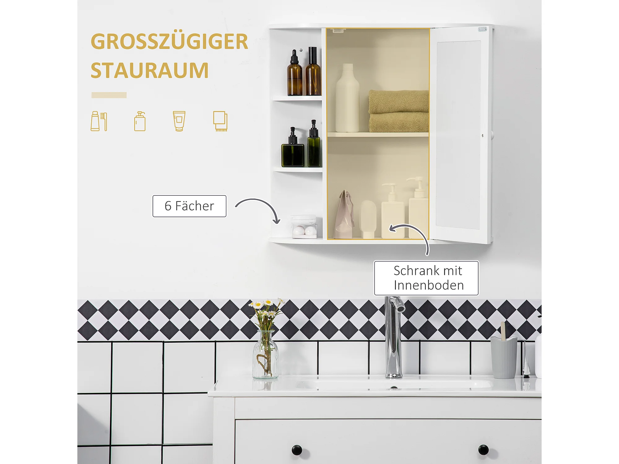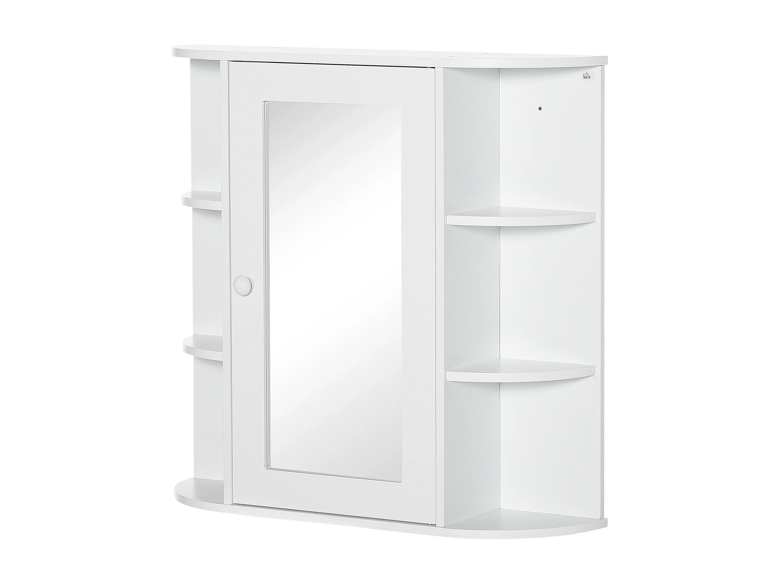 Armoire murale avec miroir, 8 compartiments, MDF, blanc, design épuré (66x17x63cm)