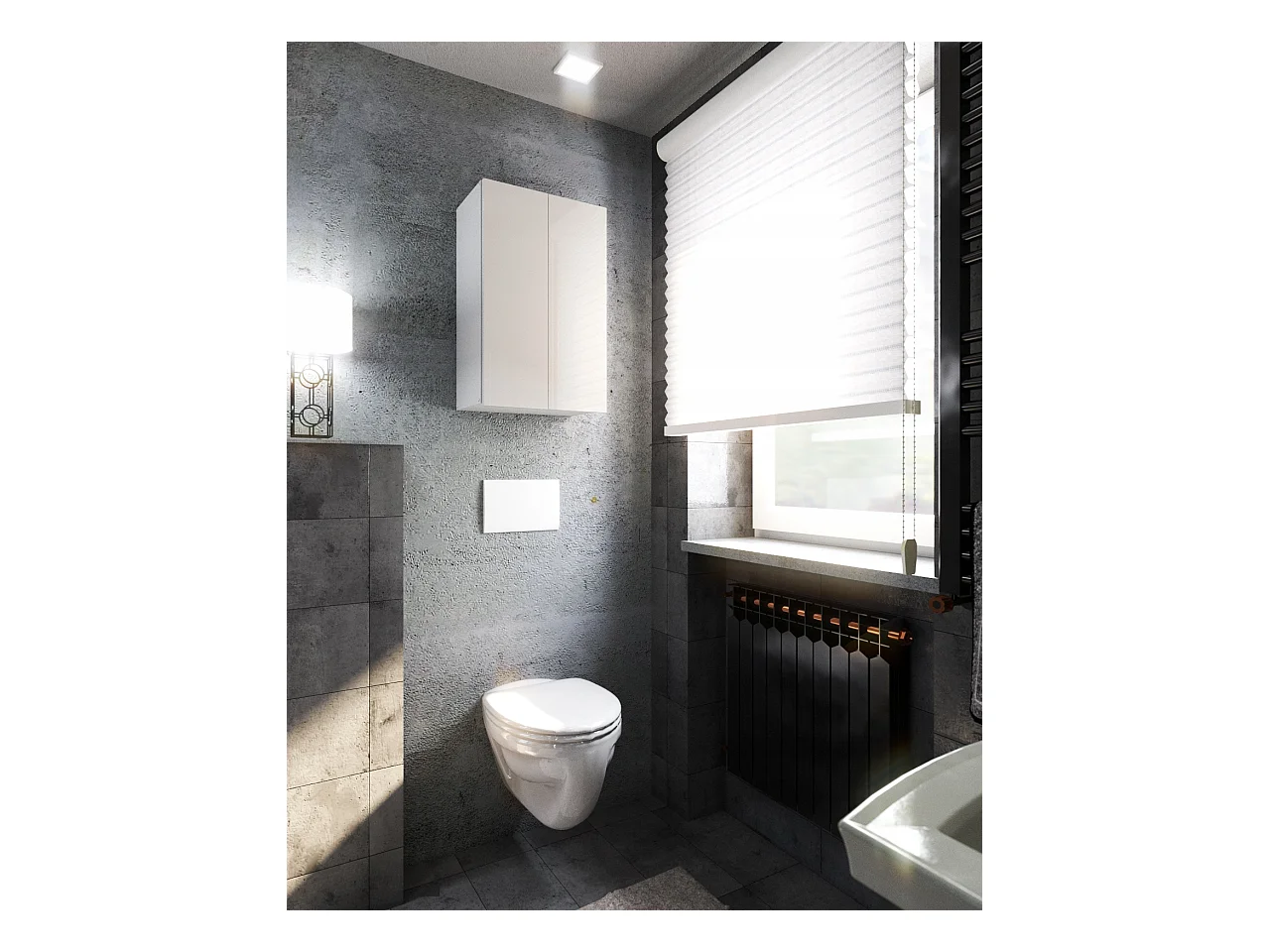 Armoire salle de bains suspendue AKORD FIN Blanche 64 cm 2 portes pleine Blanche 4 étagères 64x30x94 cm