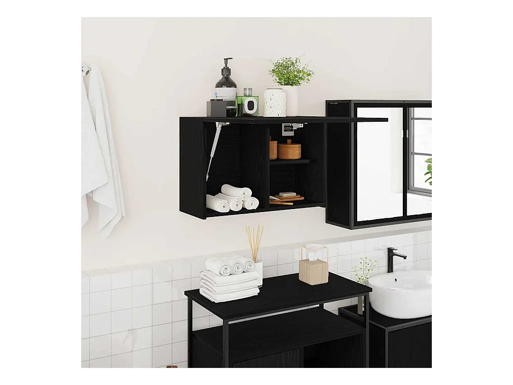 Armoire de salle de bain noir 80x33x60 cm bois d'ingénierie