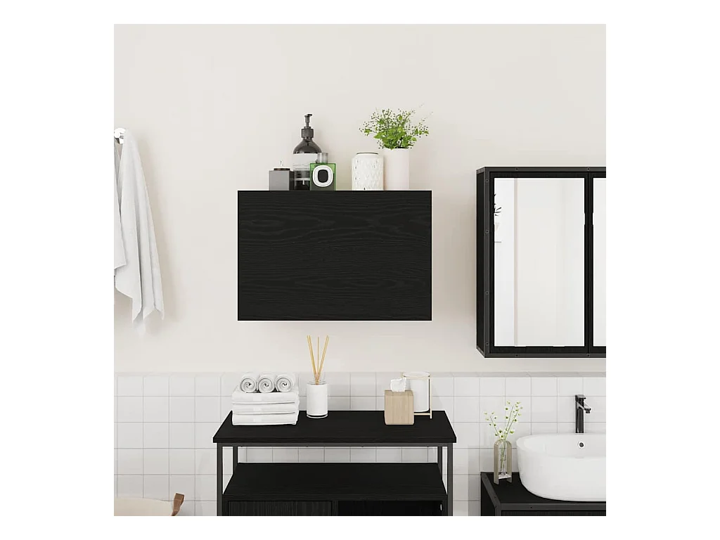 Armoire murale de bain noir 60x25x30 cm bois d'ingénierie