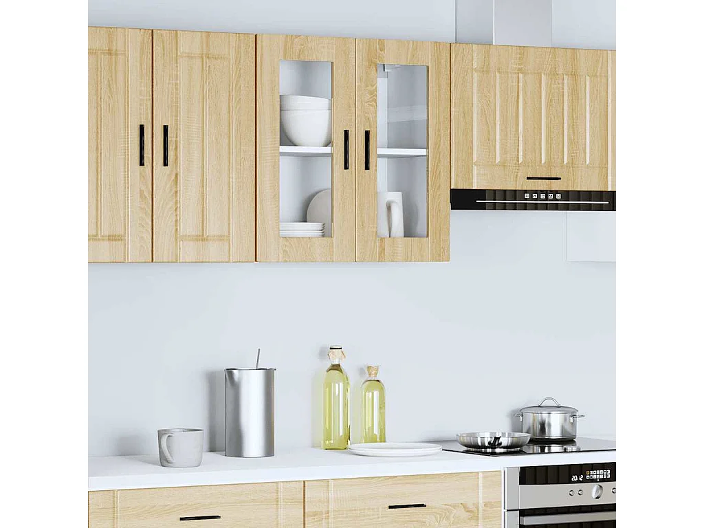 Armoire murale de cuisine et porte en verre chêne sonoma