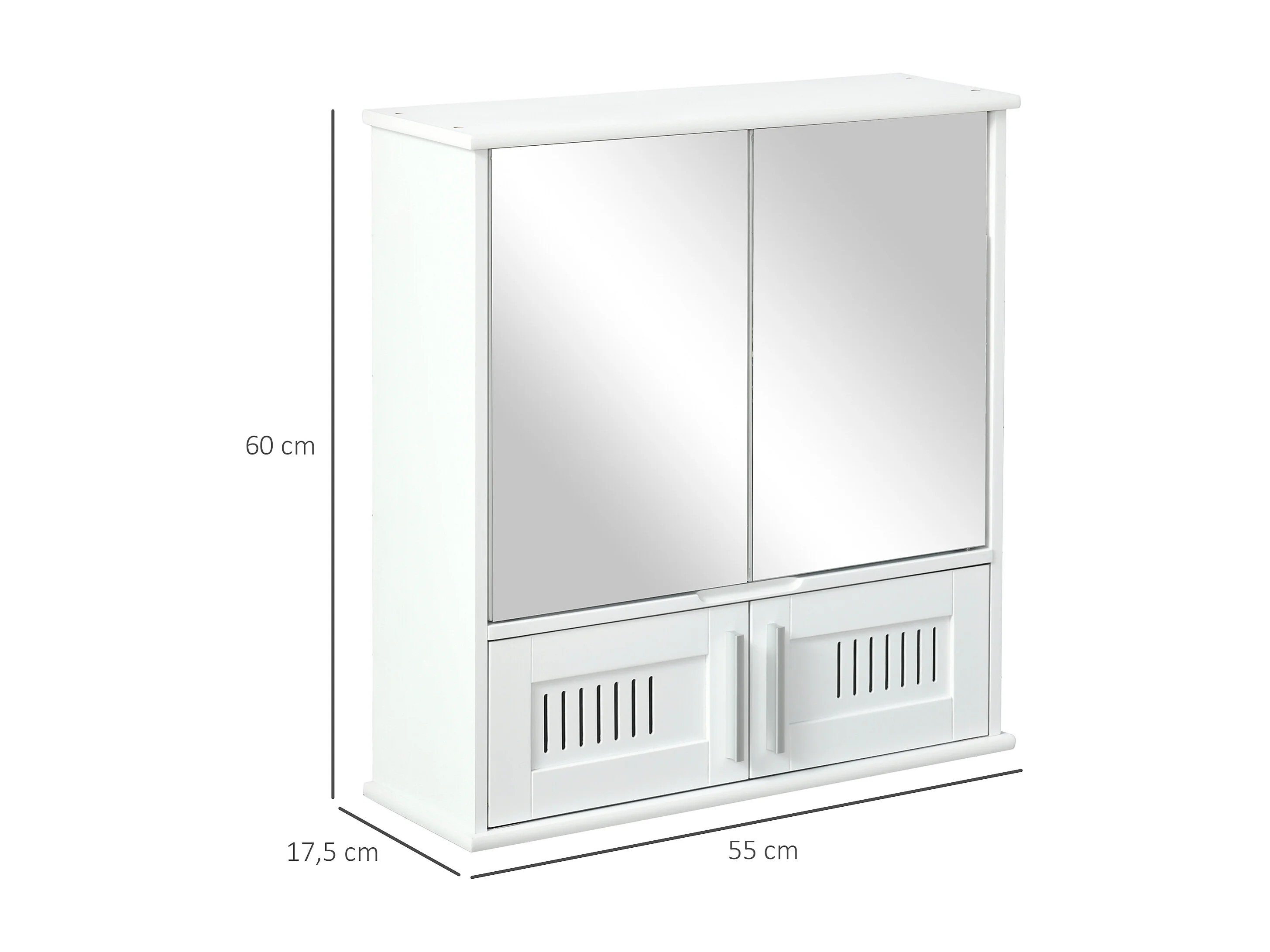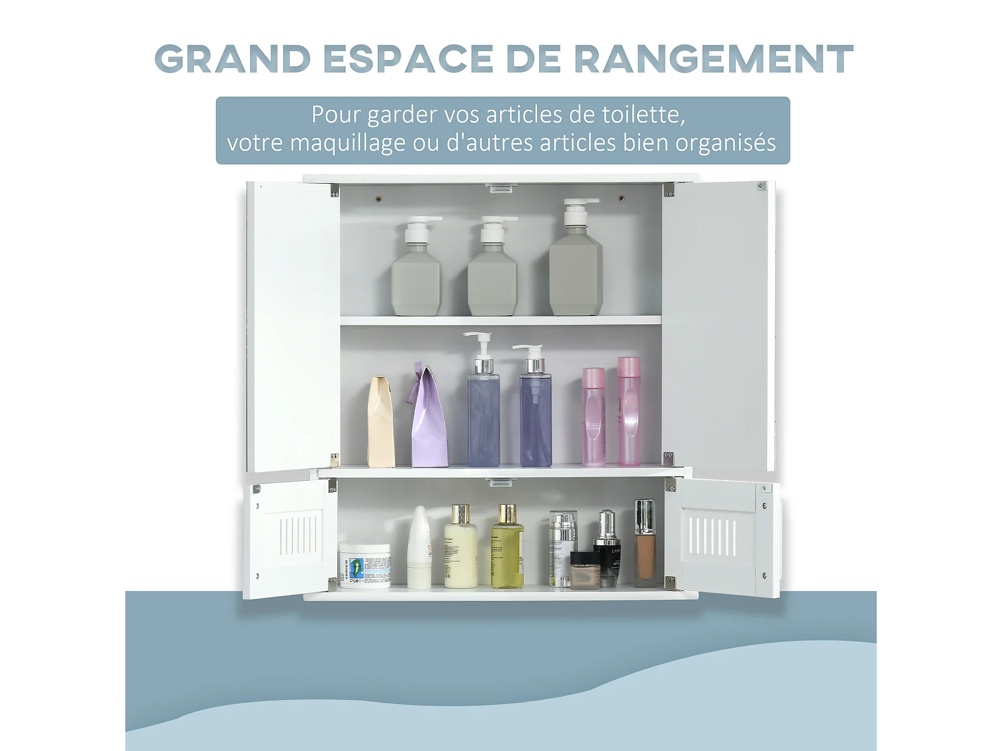 Armoire miroir de salle de bain armoire murale double portes et étagères dim. 60L x 15l x 60H cm MDF blanc