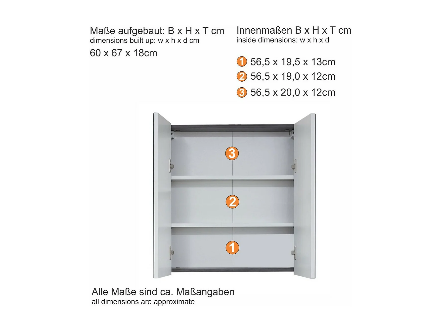 Armoire Murale de Salle de Bain avec Miroir Moon, Gris, 58x18x75 cm, Seven Design
