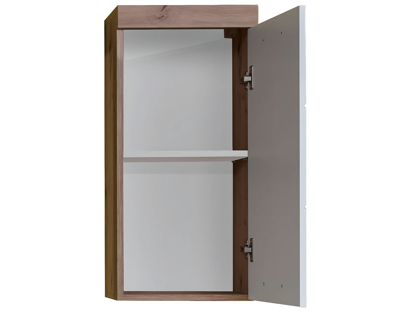 Armoire murale, meuble haut de salle de bain coloris chêne à noeuds et blanc brillant