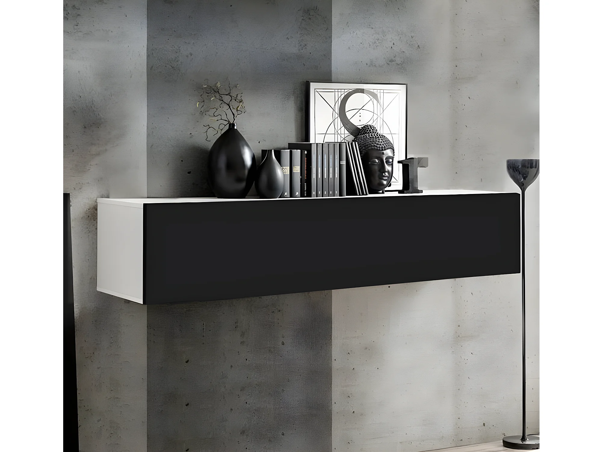 Armoire murale pour Salon Salle à manger en Blanc et Noir 160x29x30cm Krista H-160