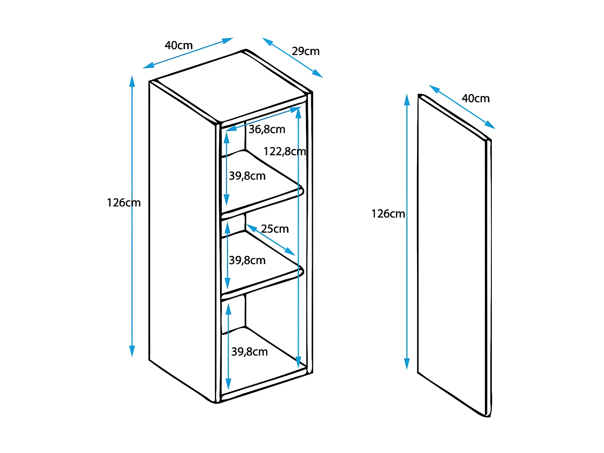 Armoire murale pour Salon Salle à manger en Blanc et Noir 40x29x126cm Nora V1