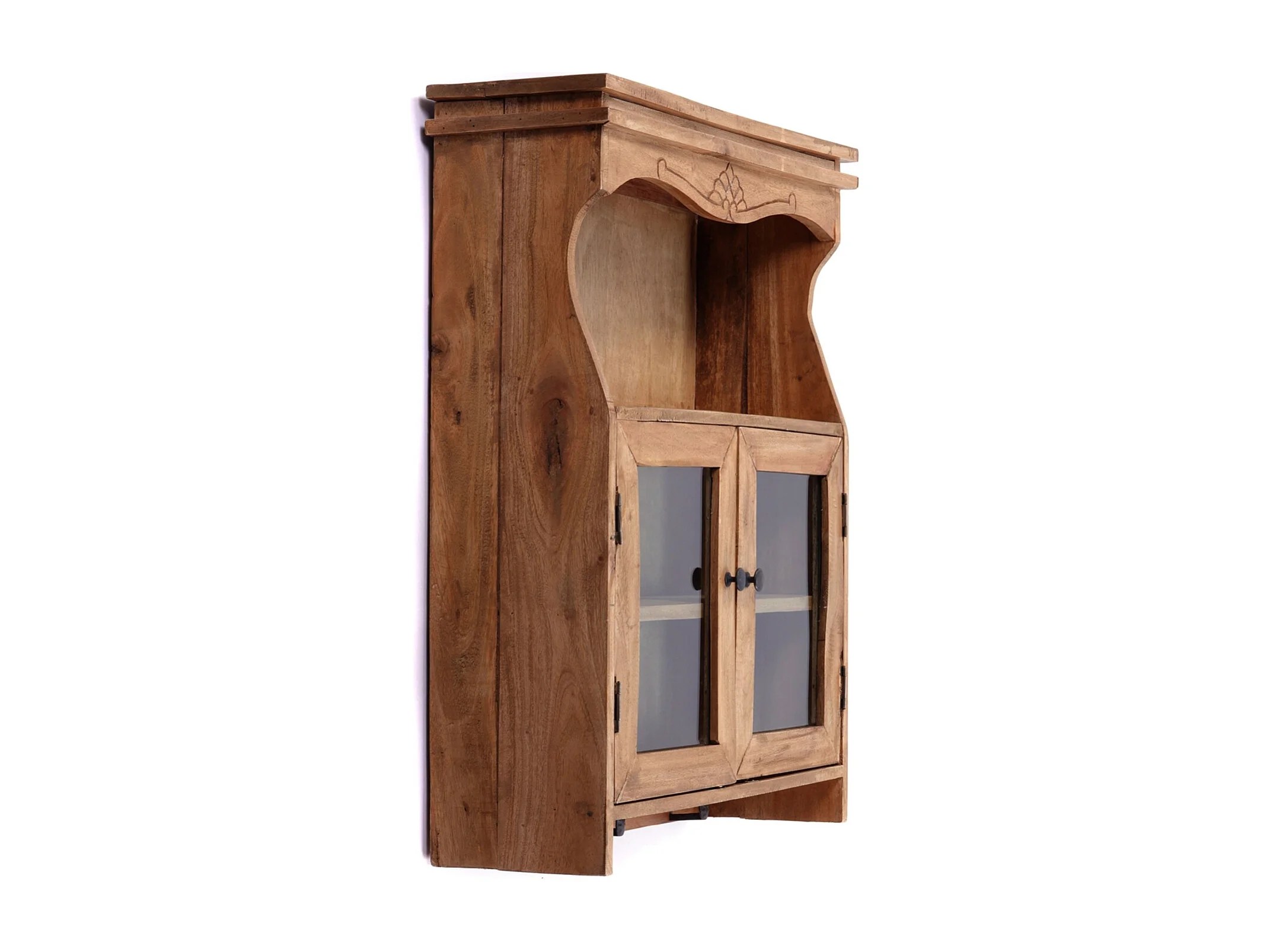 ARMOIRE MURALE Ribera Bois massif en acajou, 2 portes en verre, 3 crochets couleurs naturelles