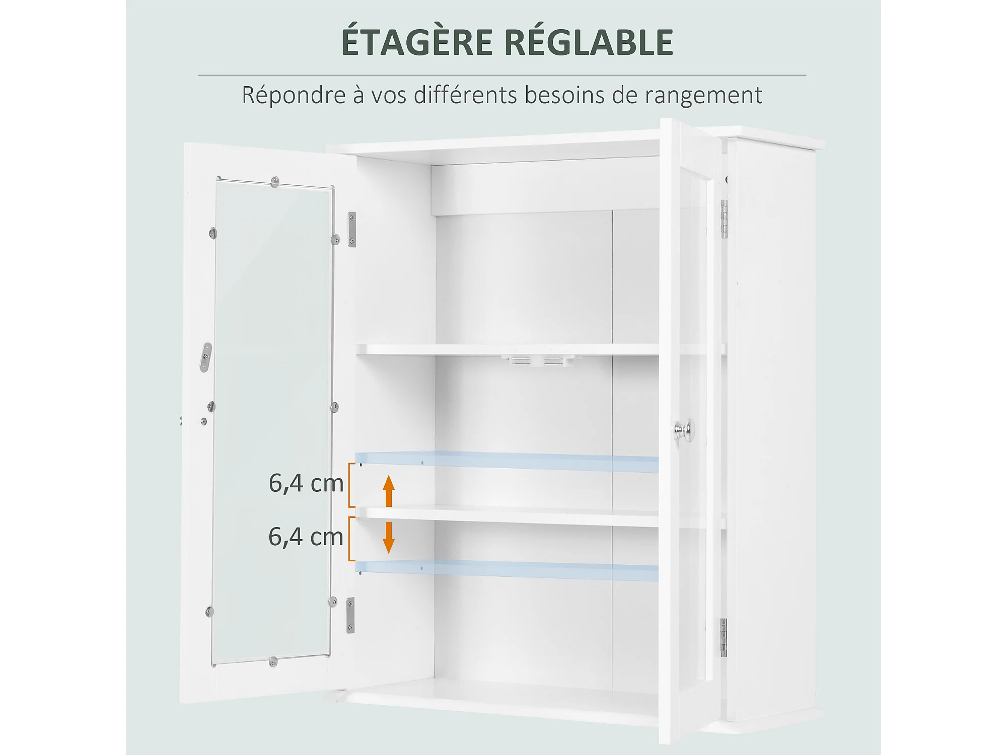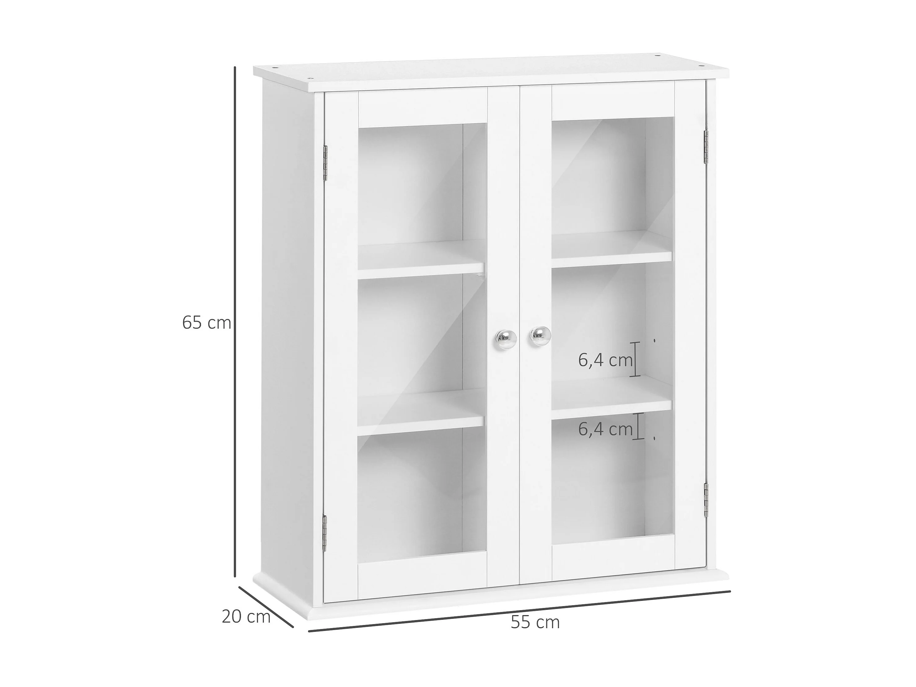 Armoire murale salle de bain 2 portes vitrées 2 étagères 55 x 20 x 65 cm blanc