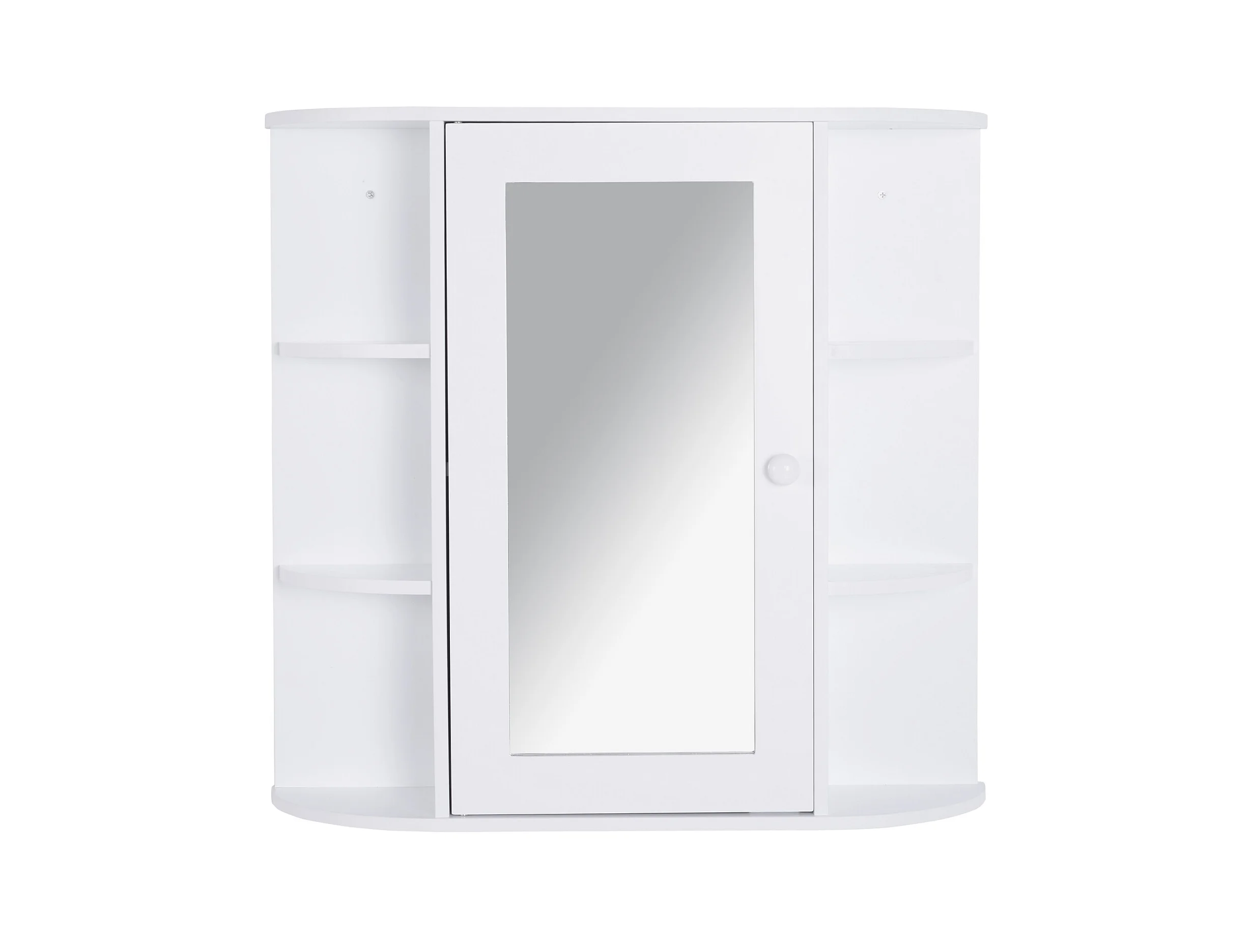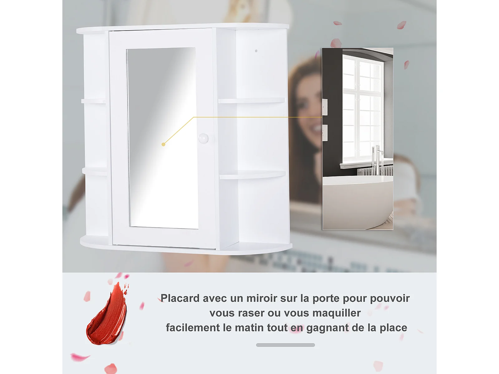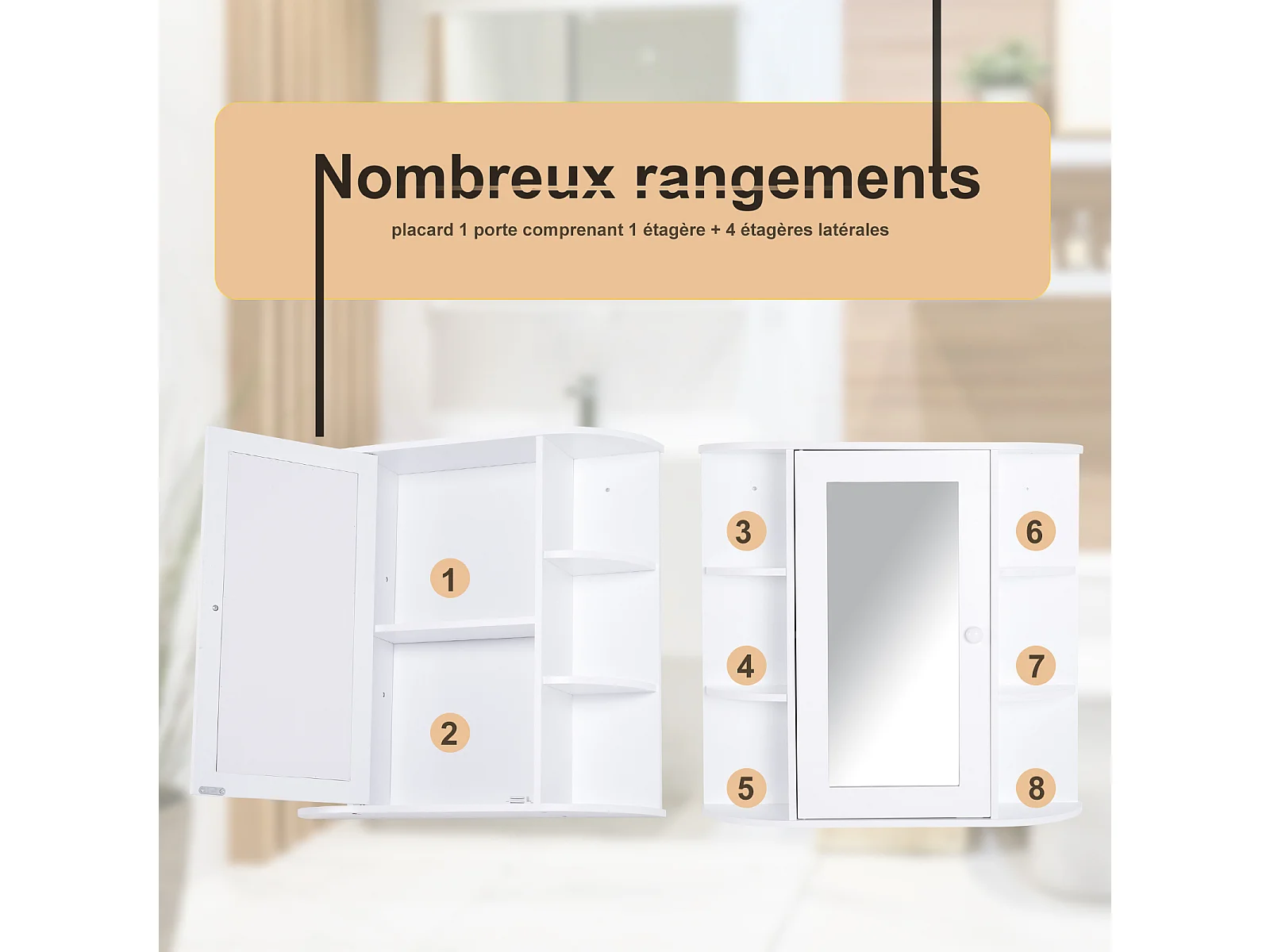 Armoire murale salle de bain armoire à glace placard de rangement toilettes 1 porte + étagères latérales MDF blanc
