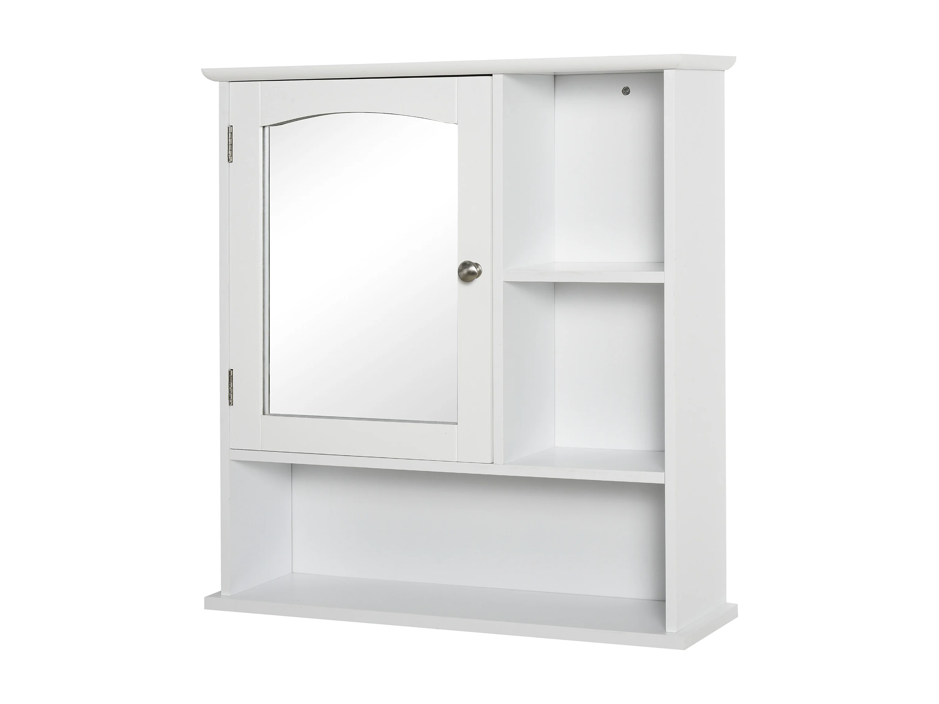 Armoire murale salle de bain armoire à glace placard de rangement toilettes 1 porte niche + étagères latérales MDF blanc