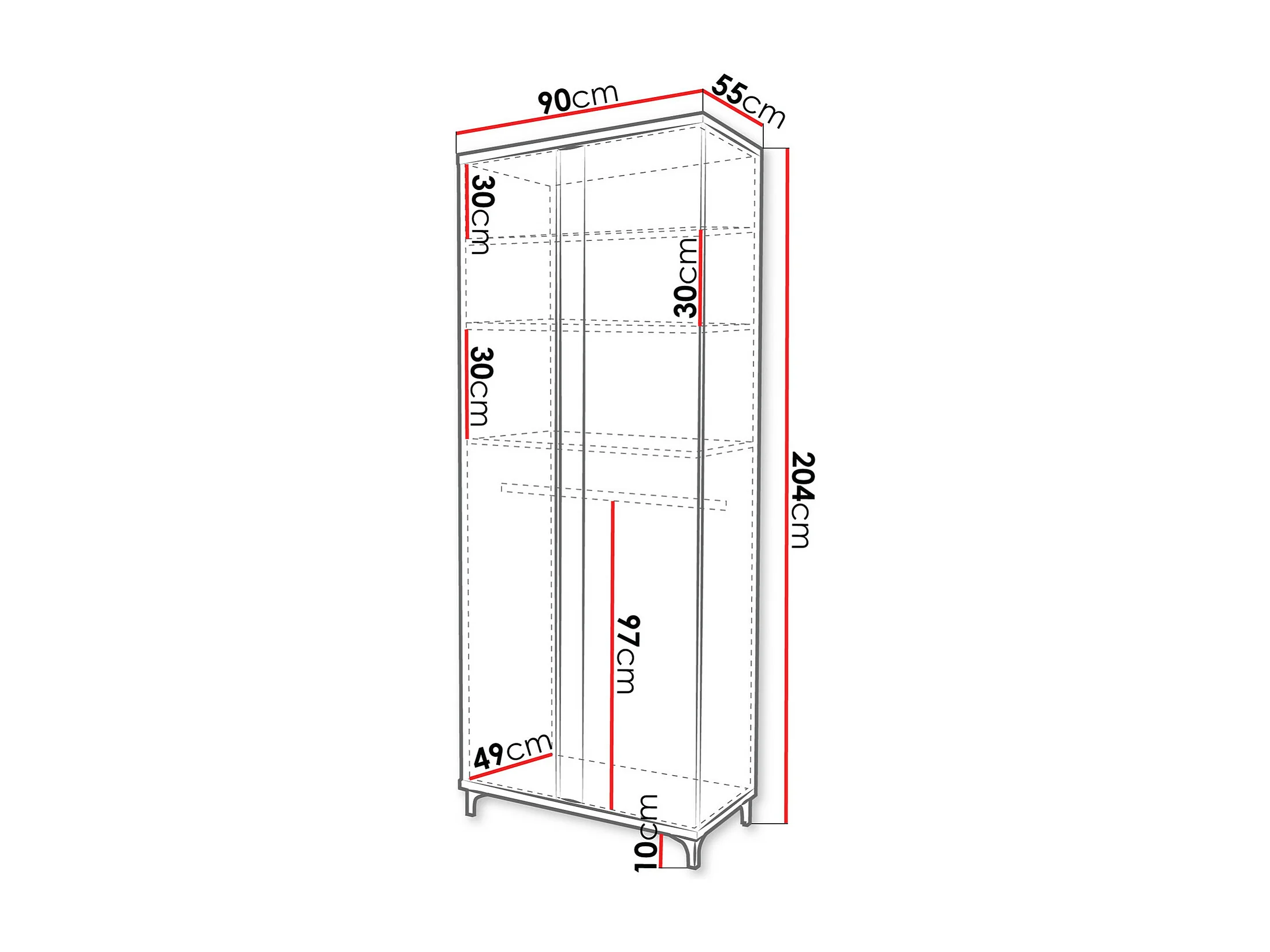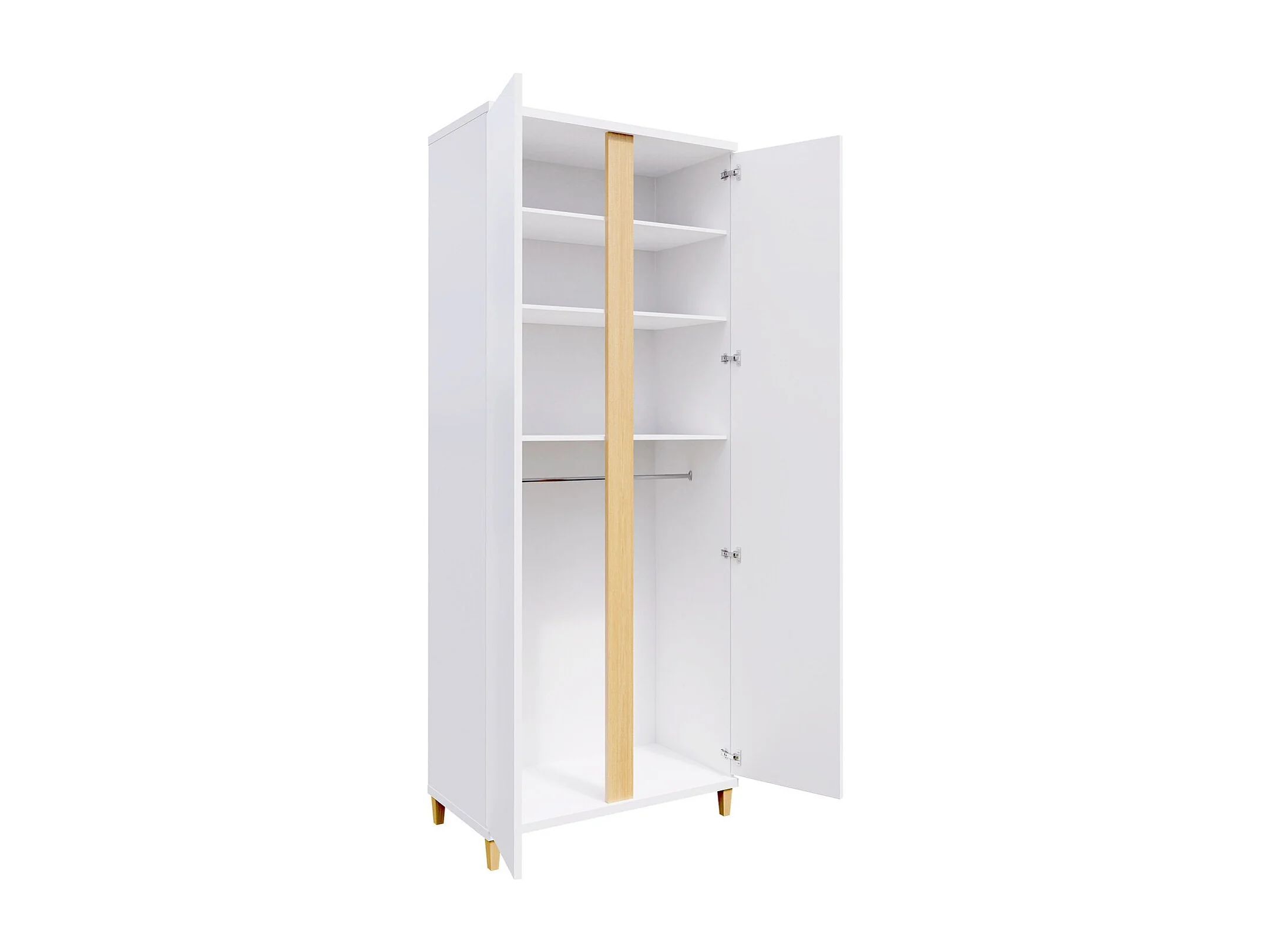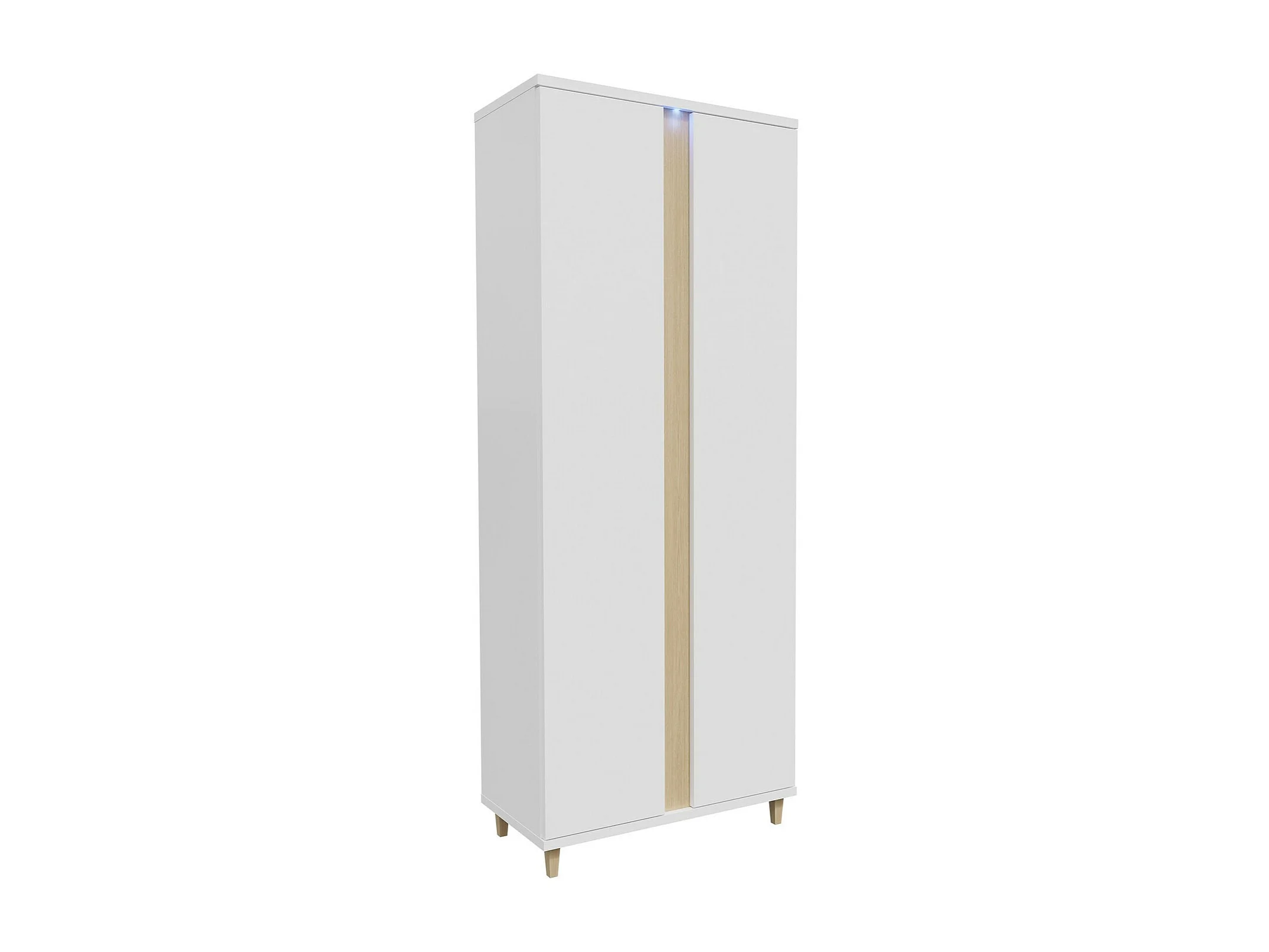 Armoire Livseri 114, Blanc brillant|Blanc|Clair bois, 200x90x55cm, Nombre d'étagères: 3