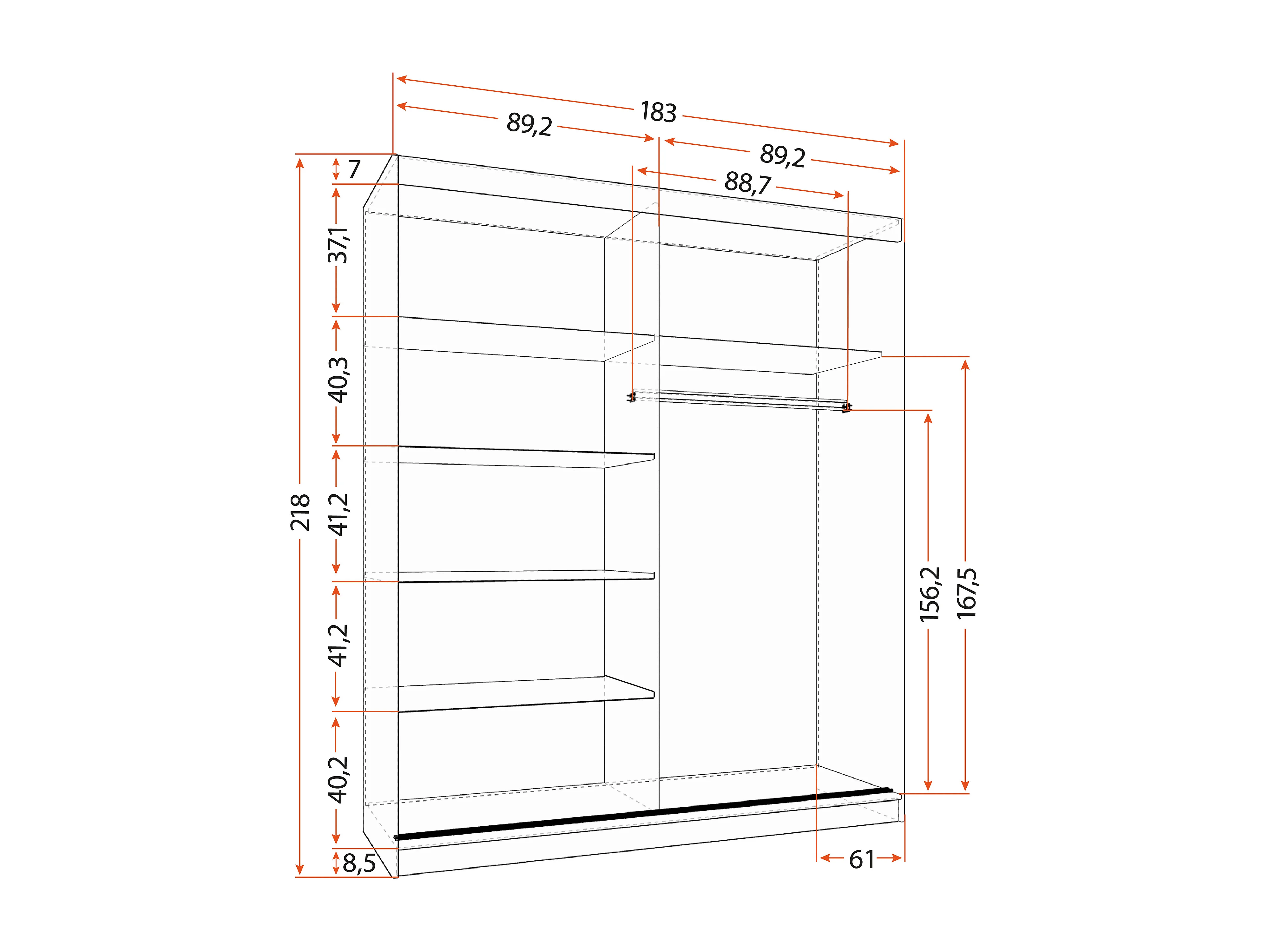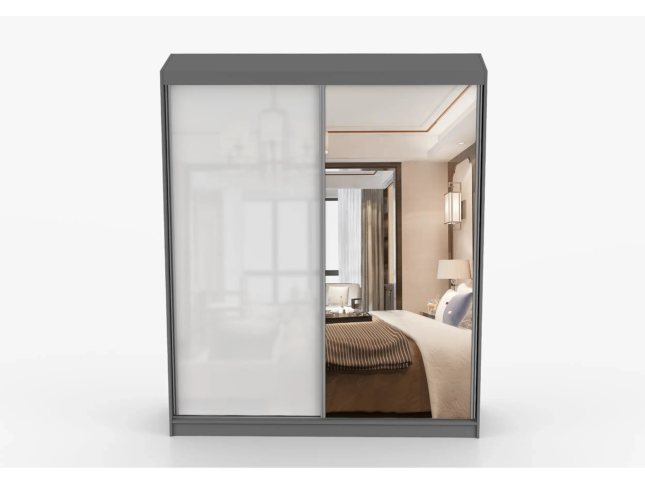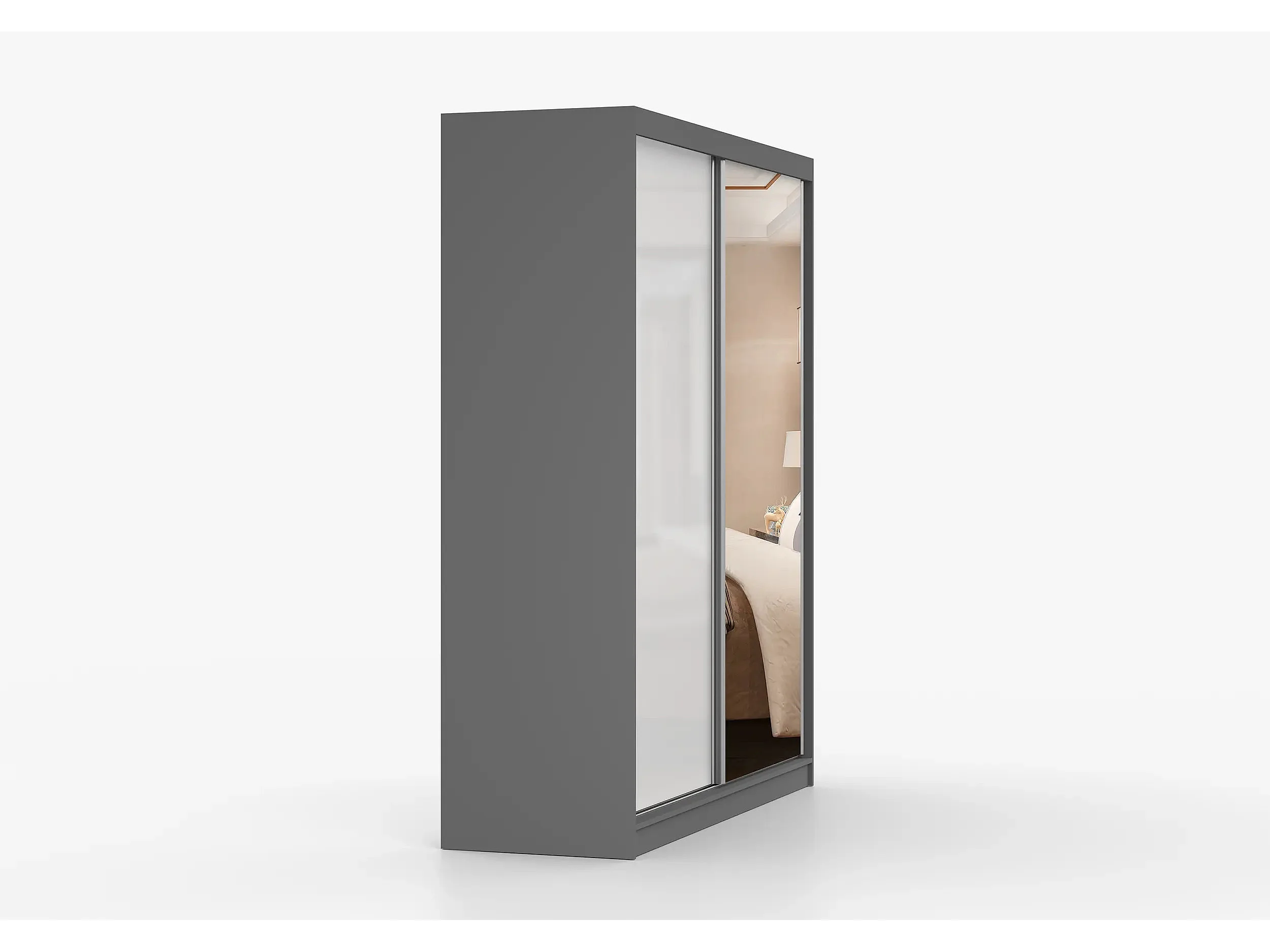 Armoire Nyméria 183 cm avec miroir - Gris - Blanc