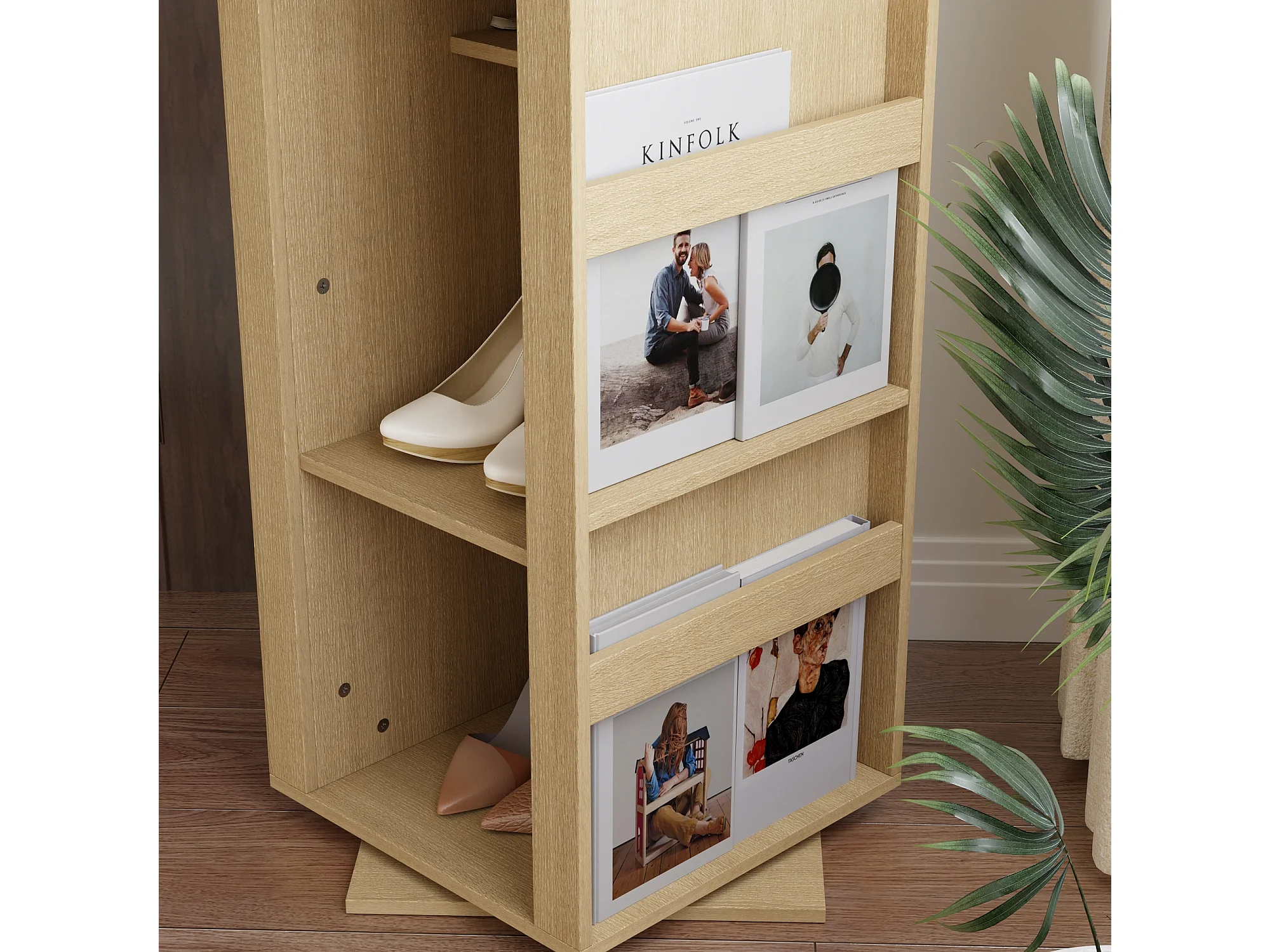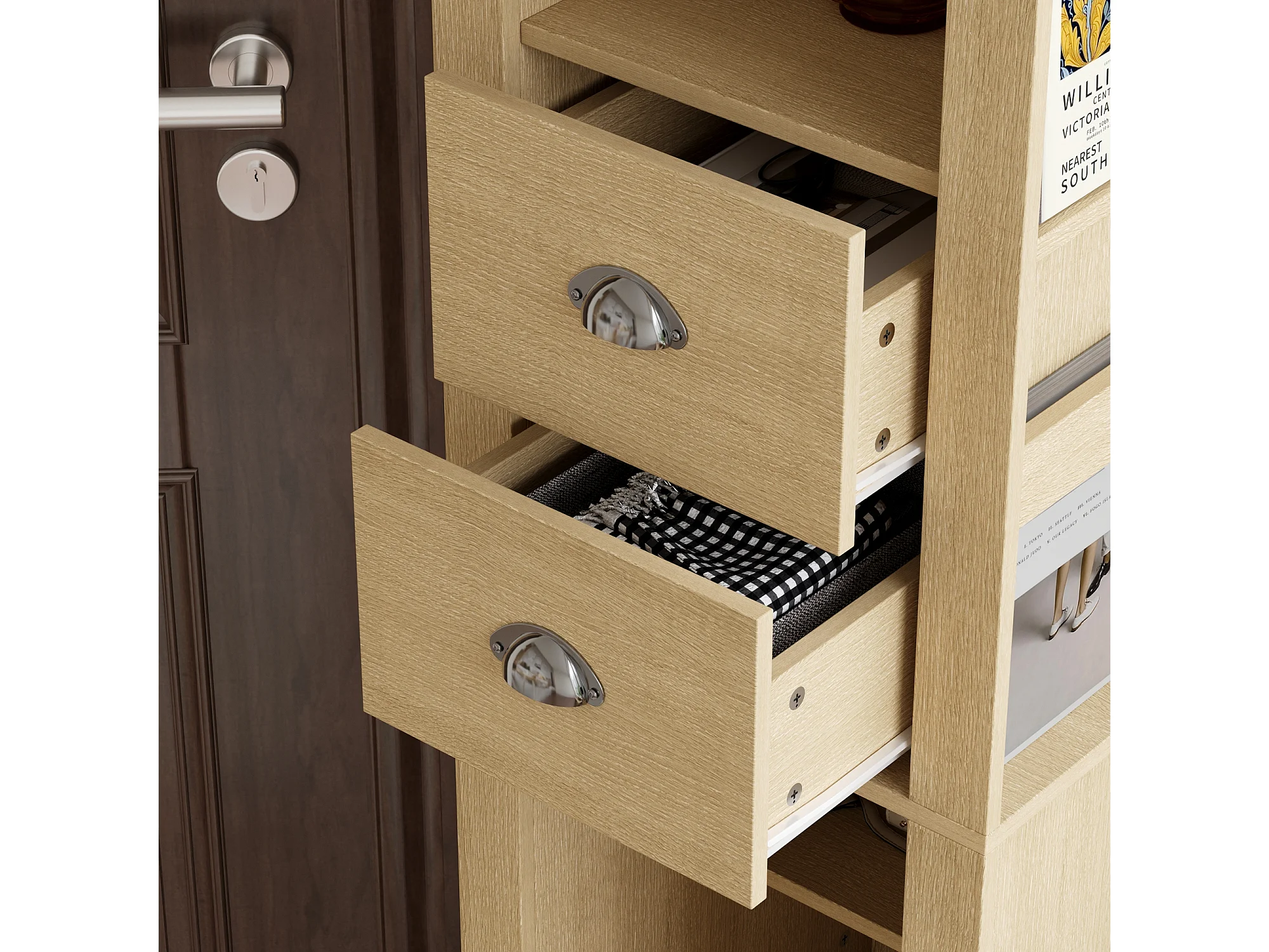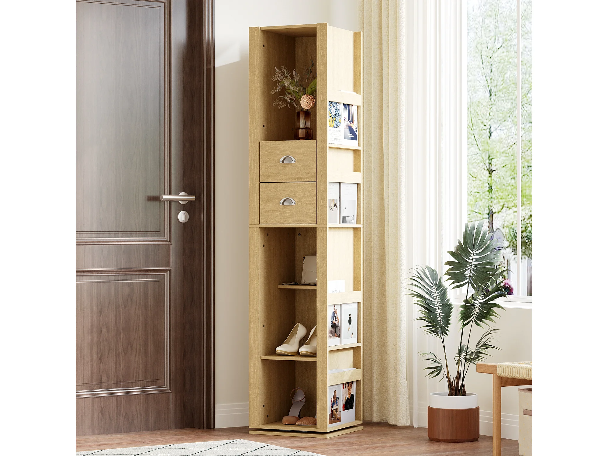 Vestiaire Pivotante avec Miroir pour l’Entrée, Meuble d’Entrée avec 2 Tiroirs et 4 Compartiments Ouverts, 40 x 40 x 160cm, Naturel