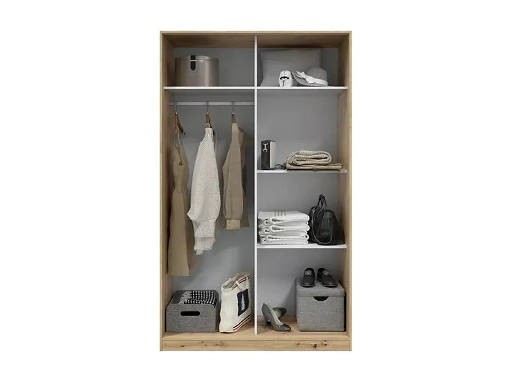 Armoire, placard avec 2 portes coulissantes coloris chêne nordique, blanc artic - longueur 120 x hauteur 200 x profondeur 50 cm
