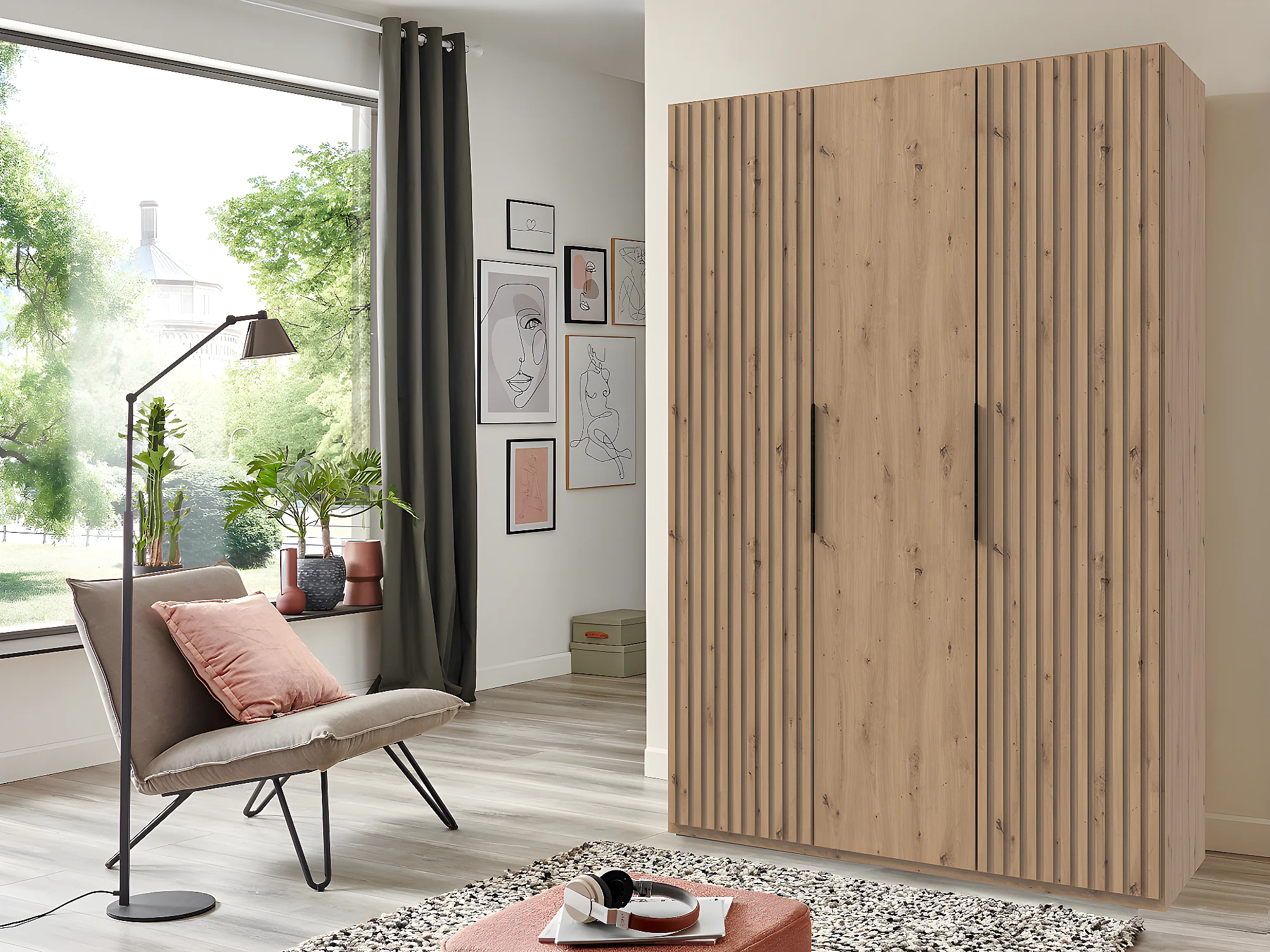 Armoire, placard coloris imitation chêne Artisan -  L. 150 x H. 216 x P. 58 cm