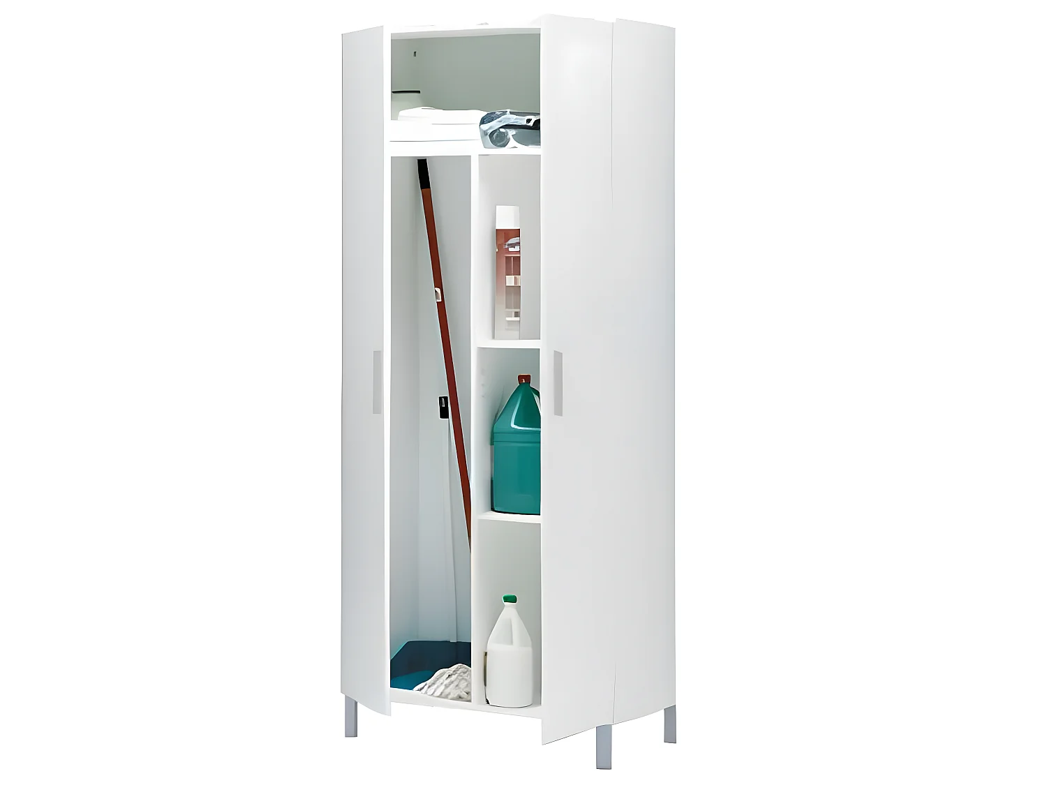 Armoire placard de rangement de 2 portes coloris blanc - Longueur 82 x profondeur 35 x hauteur 188 cm