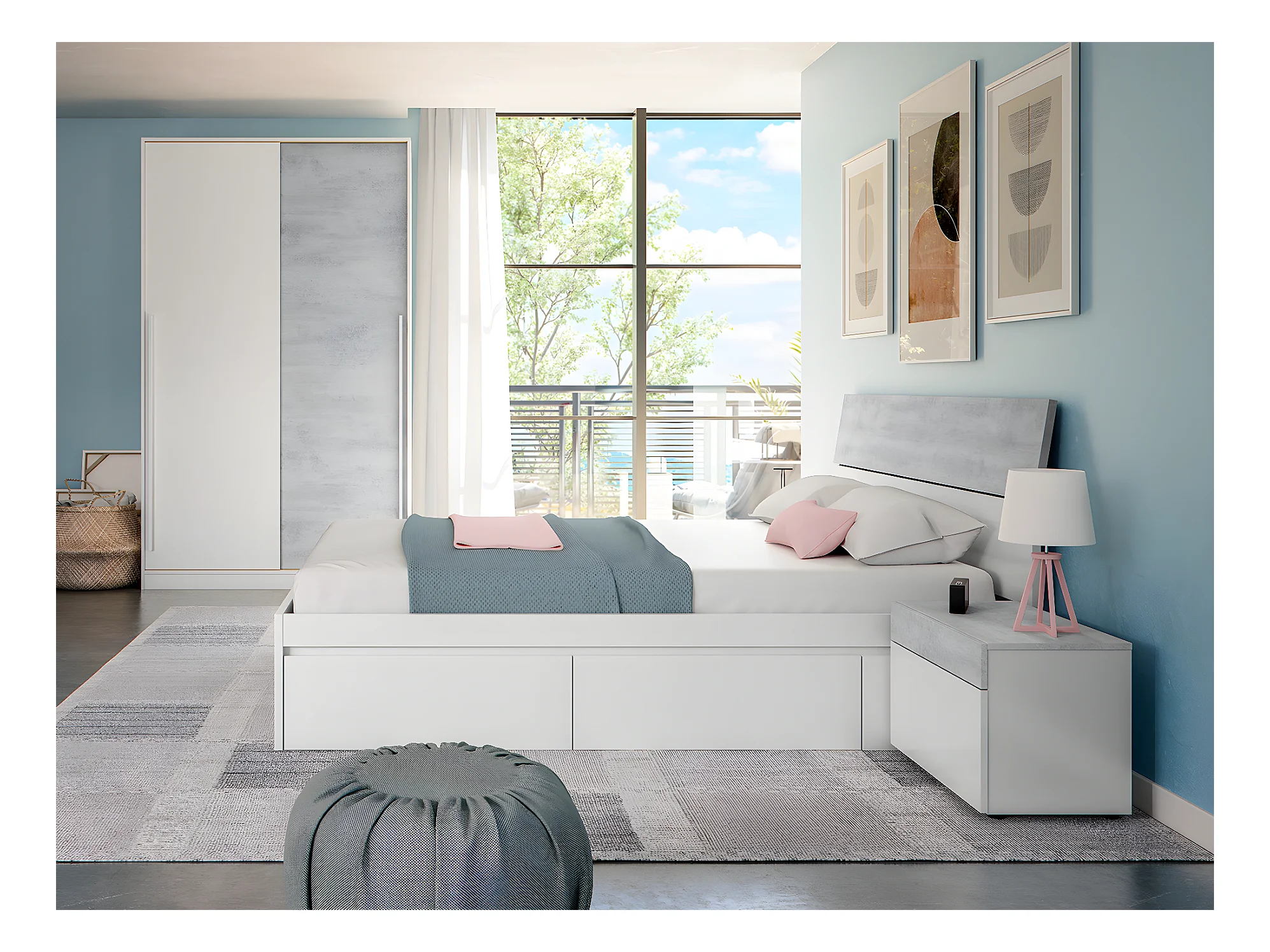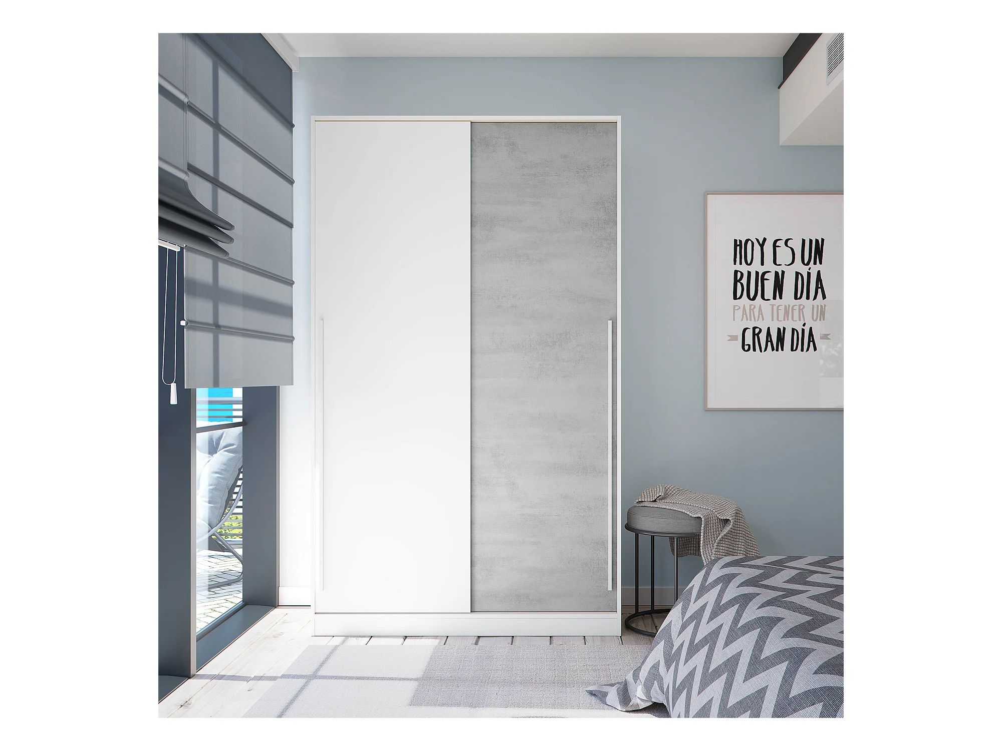Armoire placard meuble de rangement 2 portes coulissantes en bois coloris blanc mat et gris ciment - Hauteur 200 x Longueur 120 cm x Profondeur 50 cm
