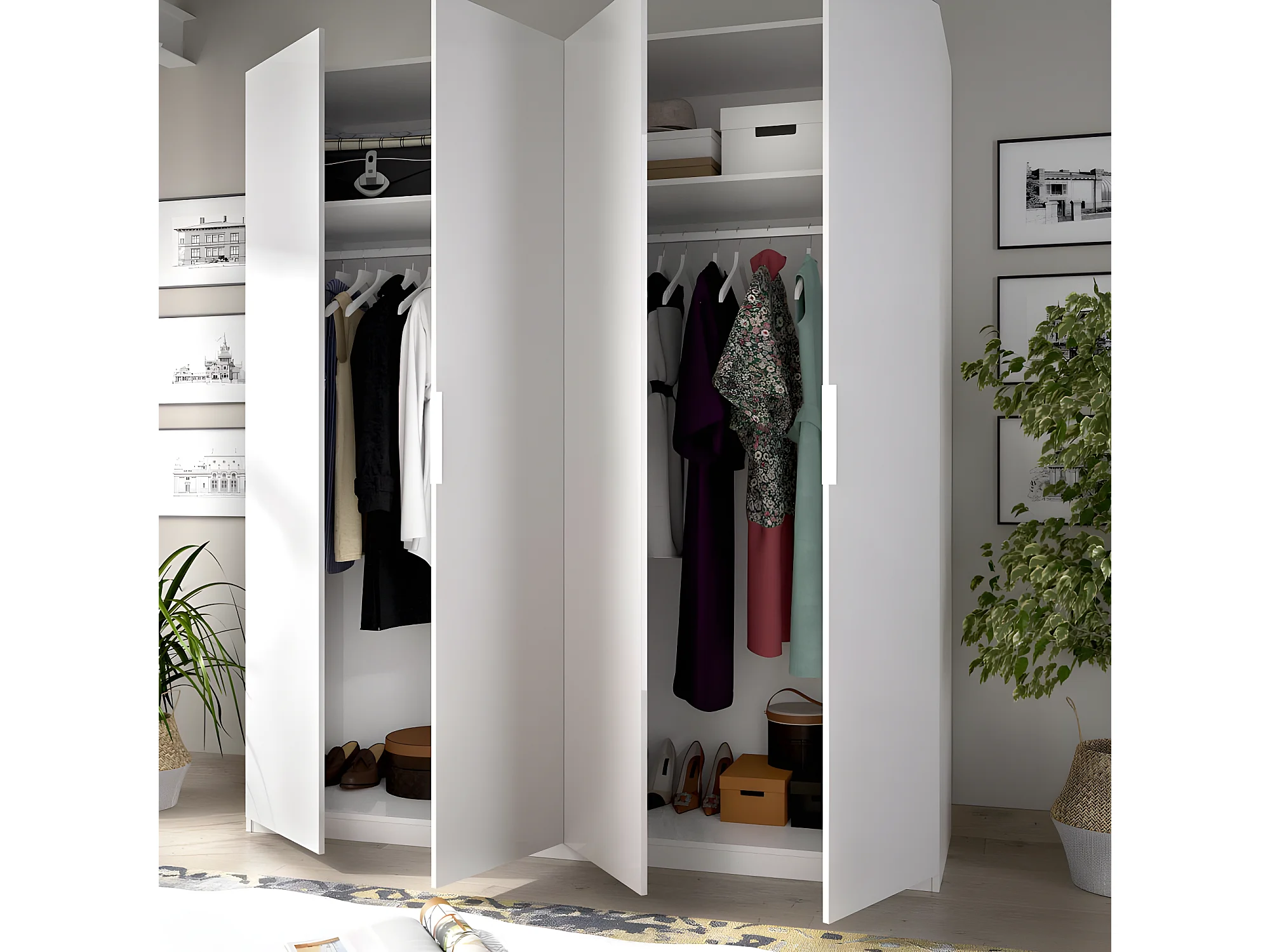 Armoire placard meuble de rangement coloris blanc brillant - Longueur 180 x Profondeur 52 x Hauteur 204 cm