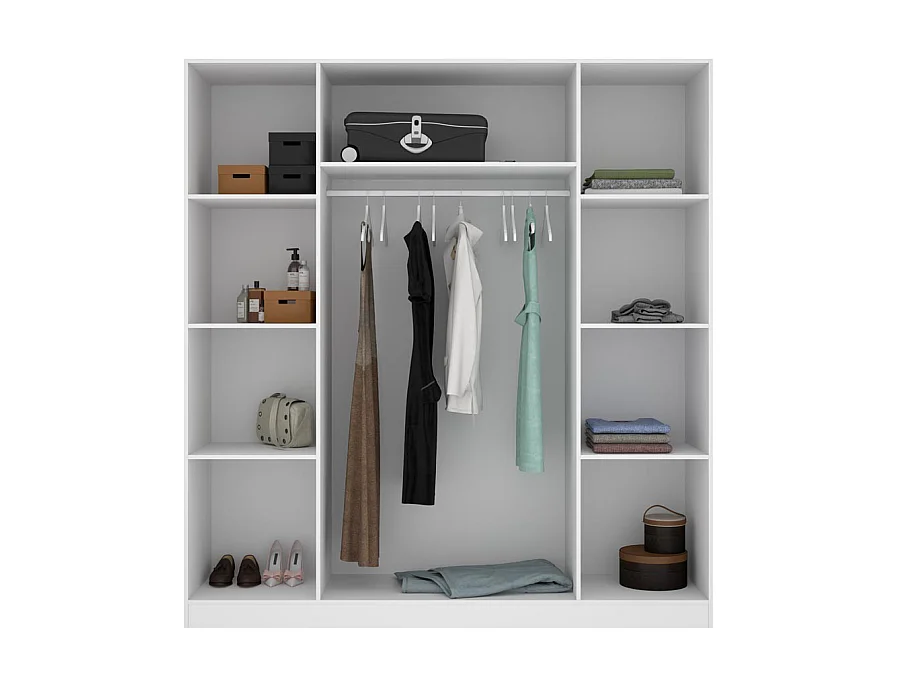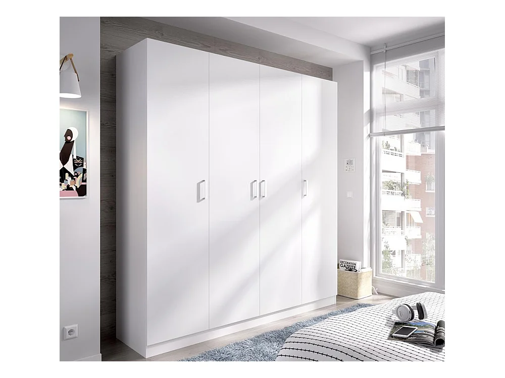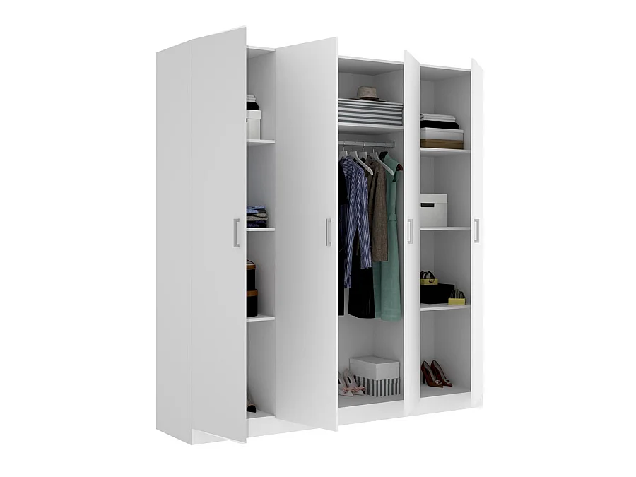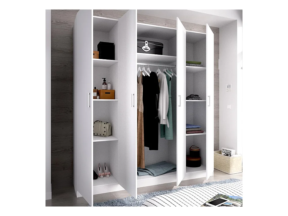 Armoire placard meuble de rangement coloris blanc - Longueur 200 x Profondeur 52 x Hauteur 215 cm