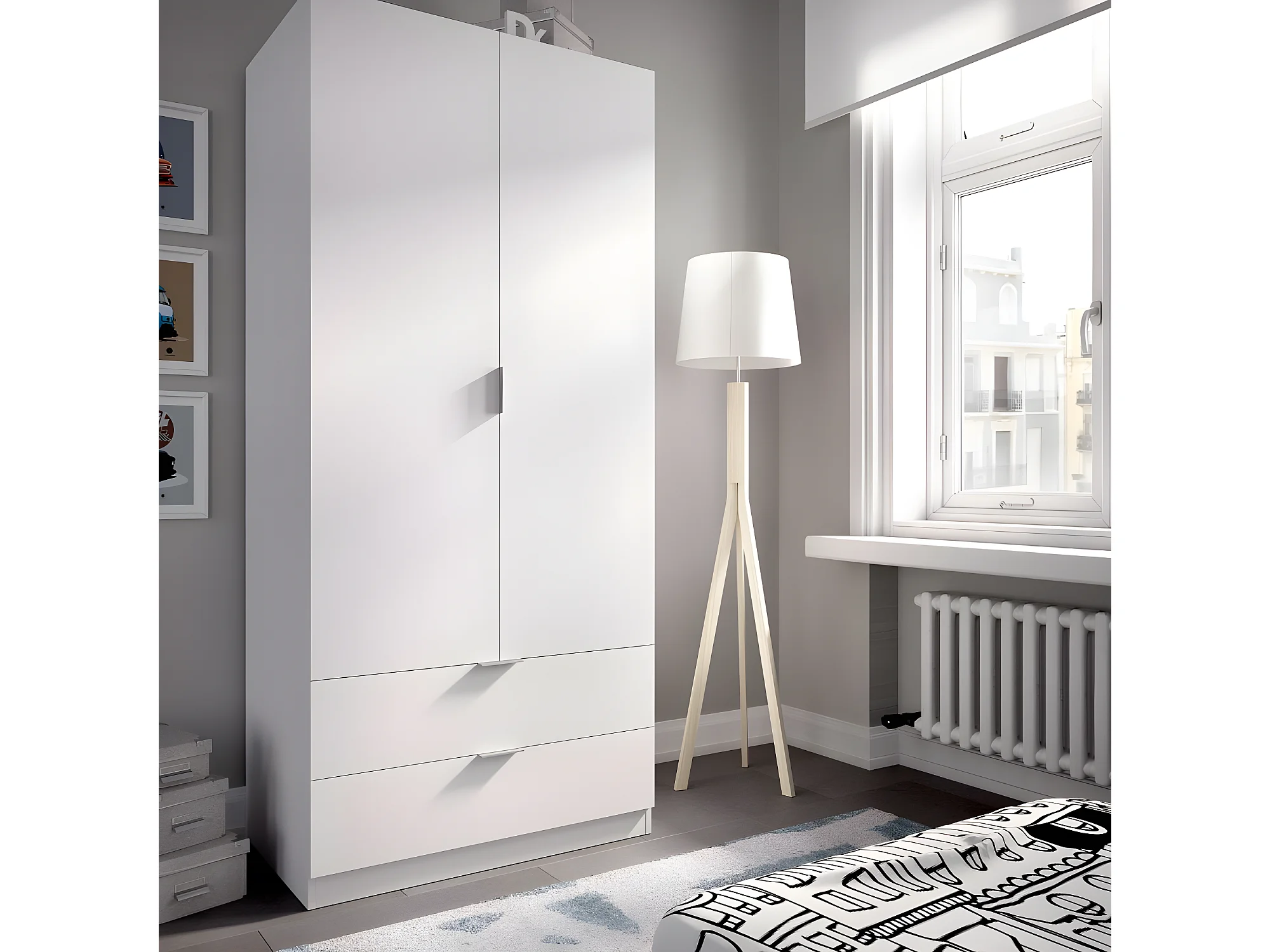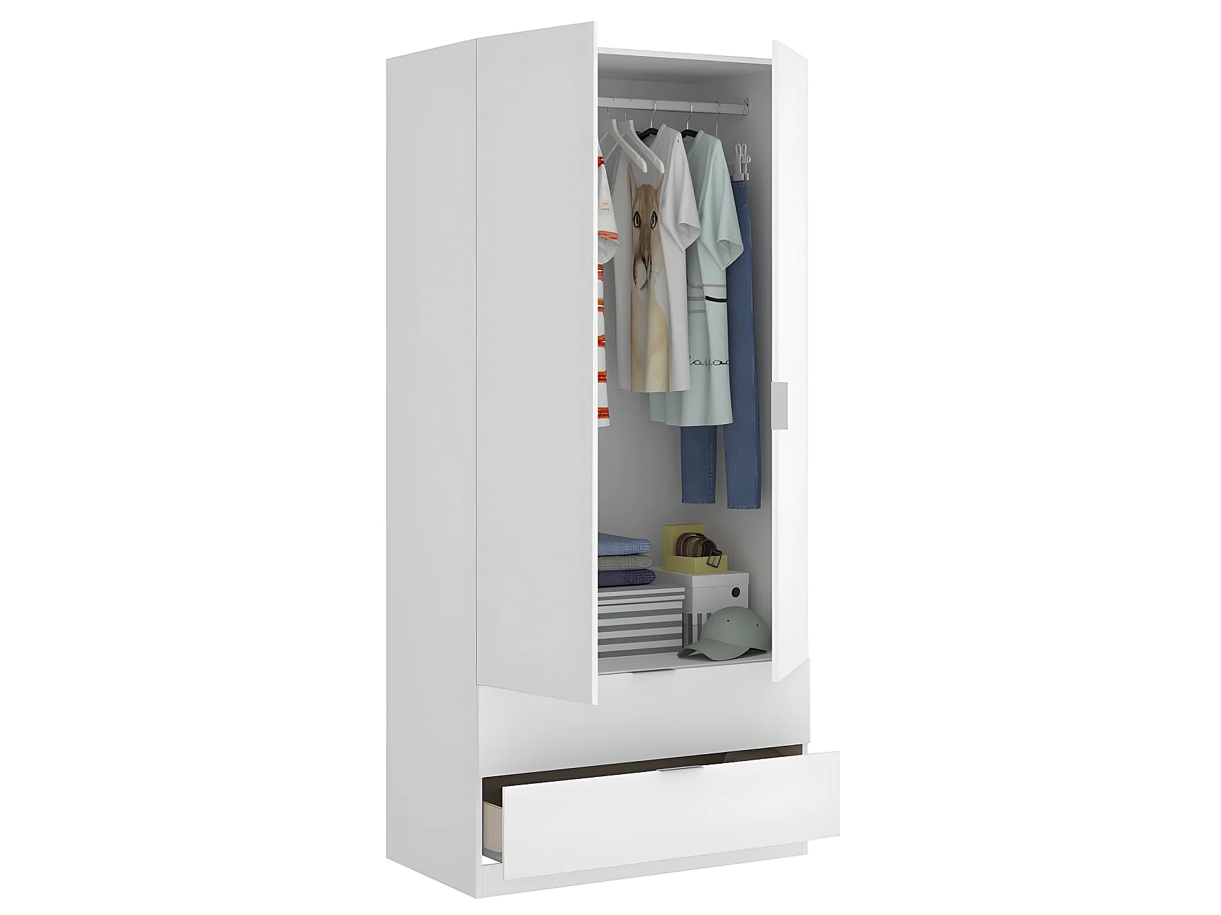 Armoire placard meuble de rangement coloris blanc - Longueur 81 x Hauteur 184 x Profondeur 52 cm