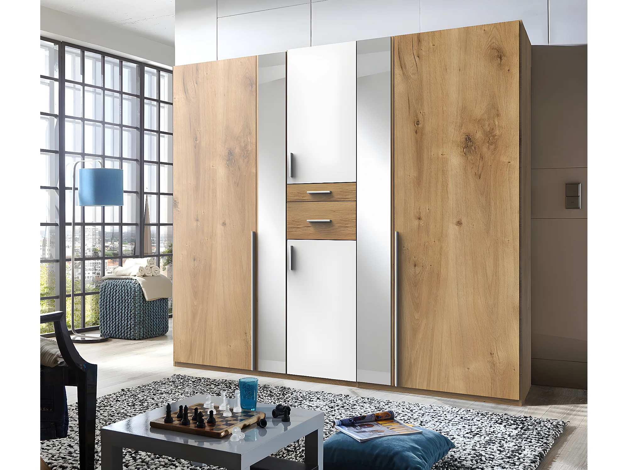 Armoire placard meuble de rangement coloris imitation chêne poutre/blanc