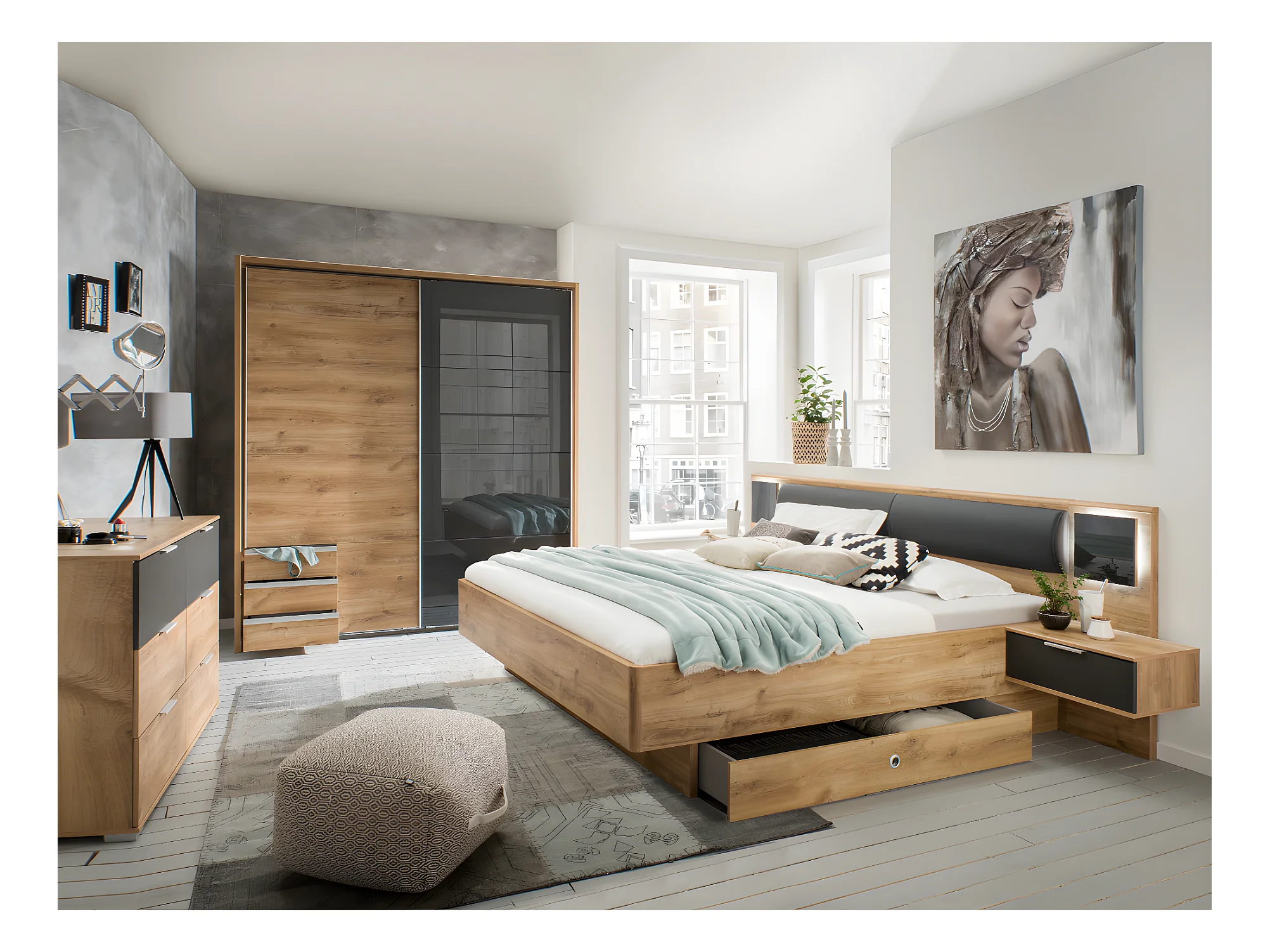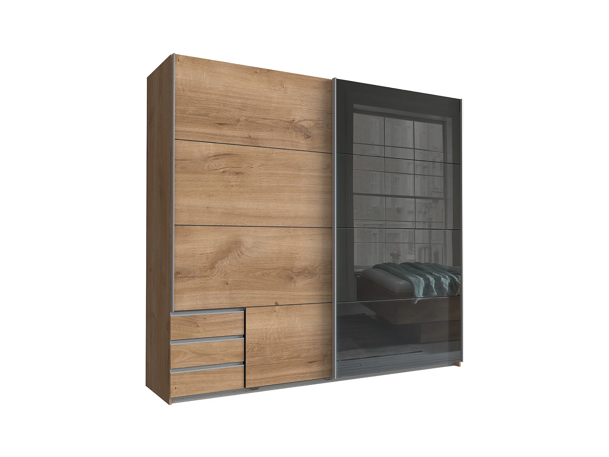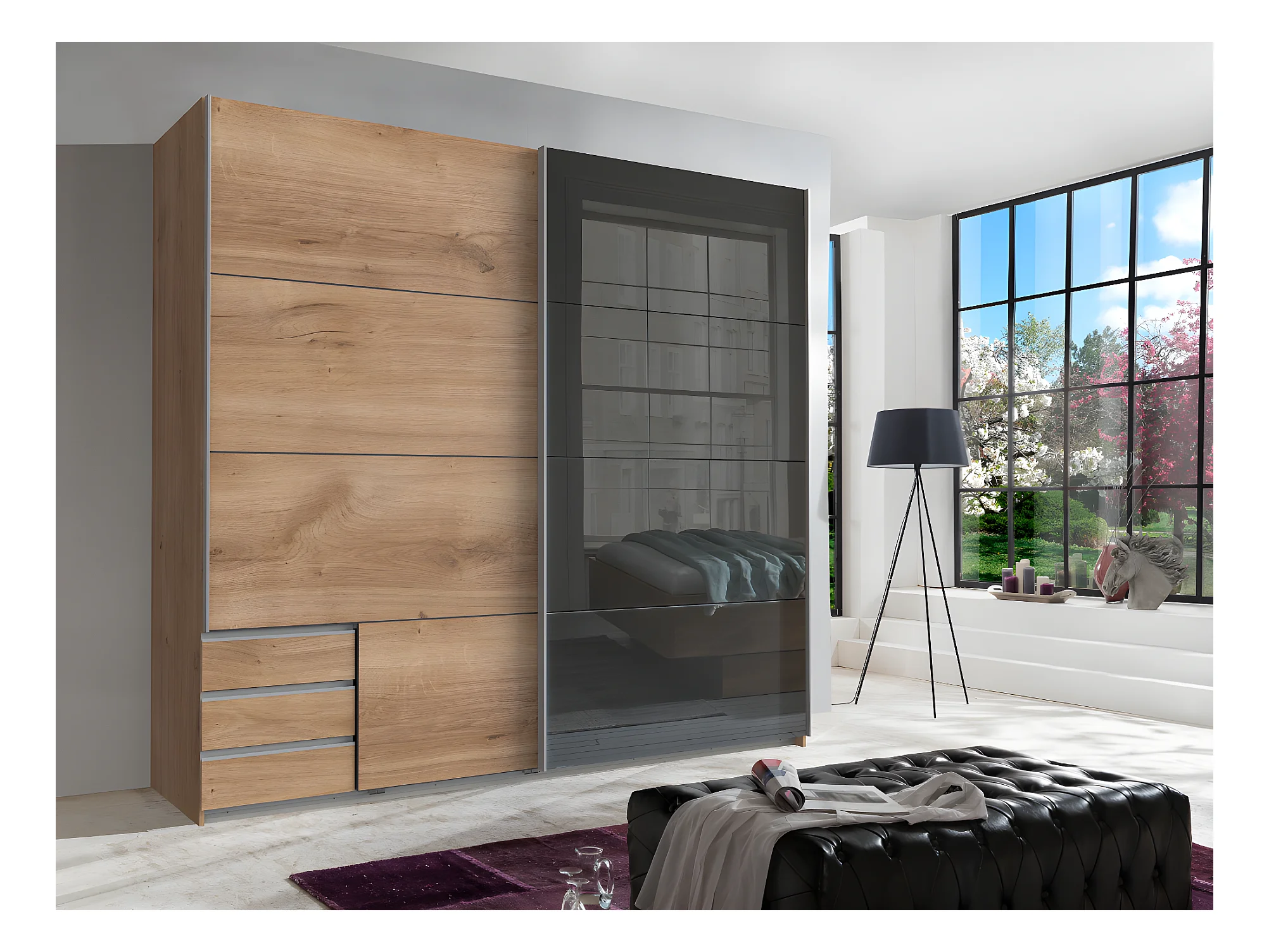 Armoire placard meuble de rangement coloris imitation chêne poutre/graphite