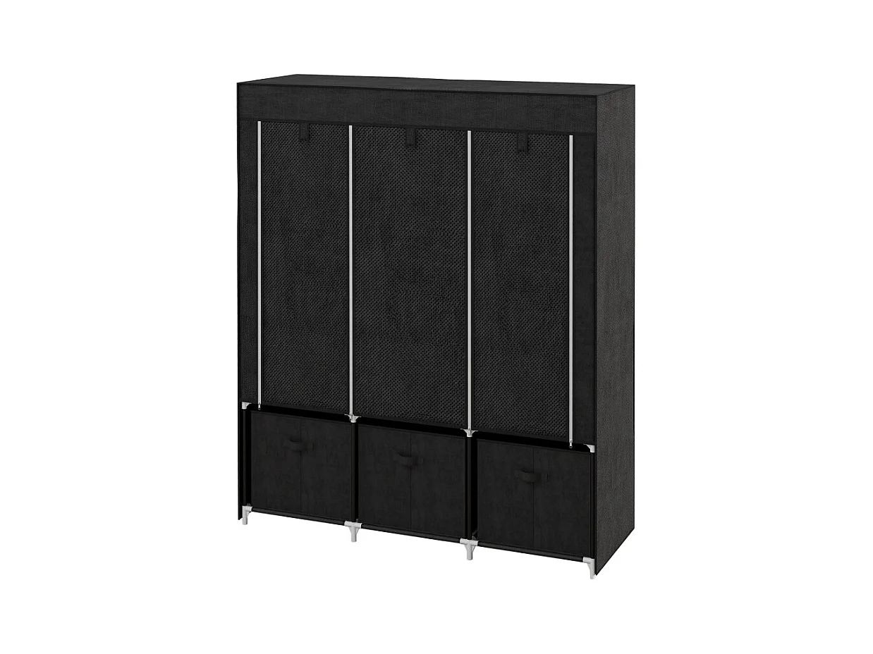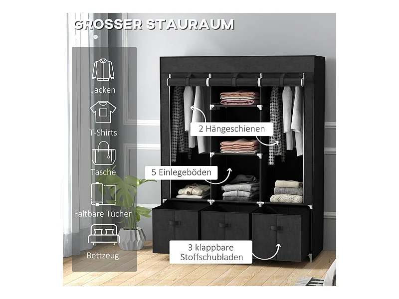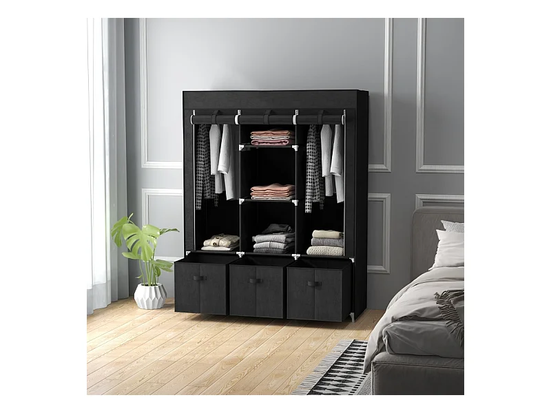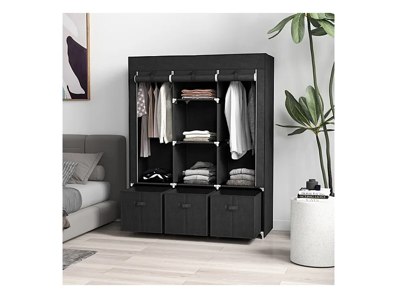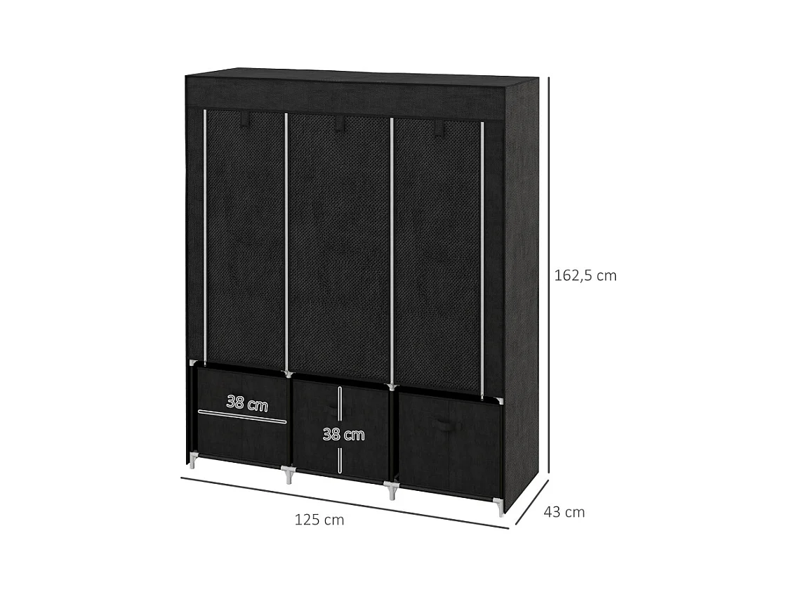 Armoire pliante en tissu avec 3 tiroirs – Noir, 125 x 43 x 162,5 cm, pratique et gain de place pour chambre ou salon