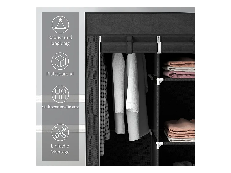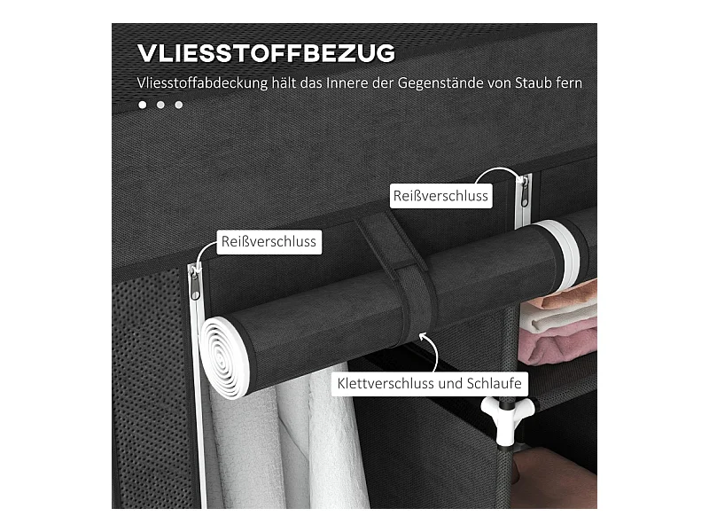 Armoire en tissu avec fermeture éclair – 1 tringle et 10 étagères, 150 x 43 x 162,5 cm, pratique, robuste et gain de place
