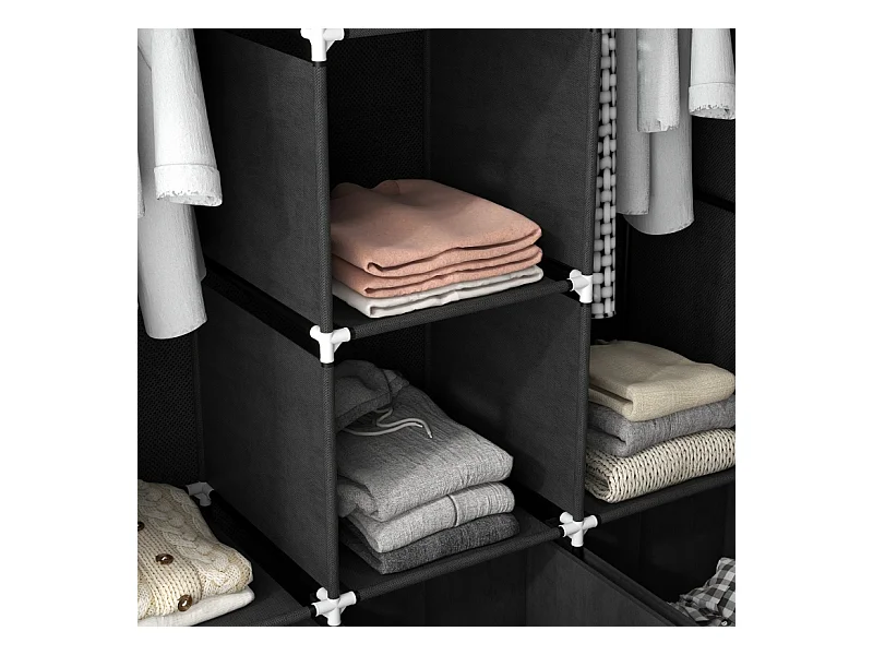 Armoire pliante en tissu noir avec 6 compartiments – 103 x 43 x 162,5 cm, pratique et gain de place pour chambre ou couloir
