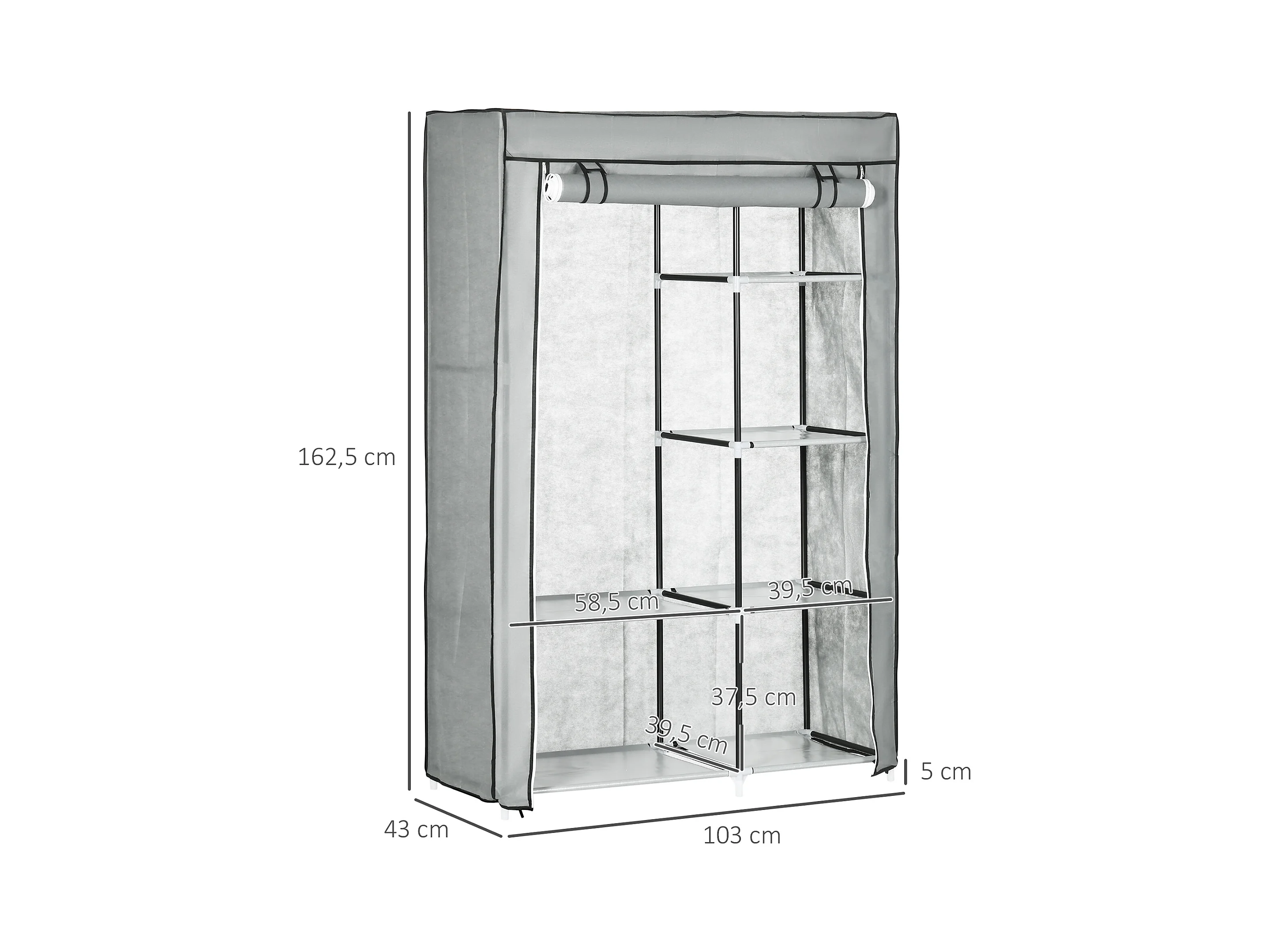 Armoire pliante en tissu gris avec 6 compartiments – 103 x 43 x 162,5 cm, pratique et gain de place pour chambre ou couloir