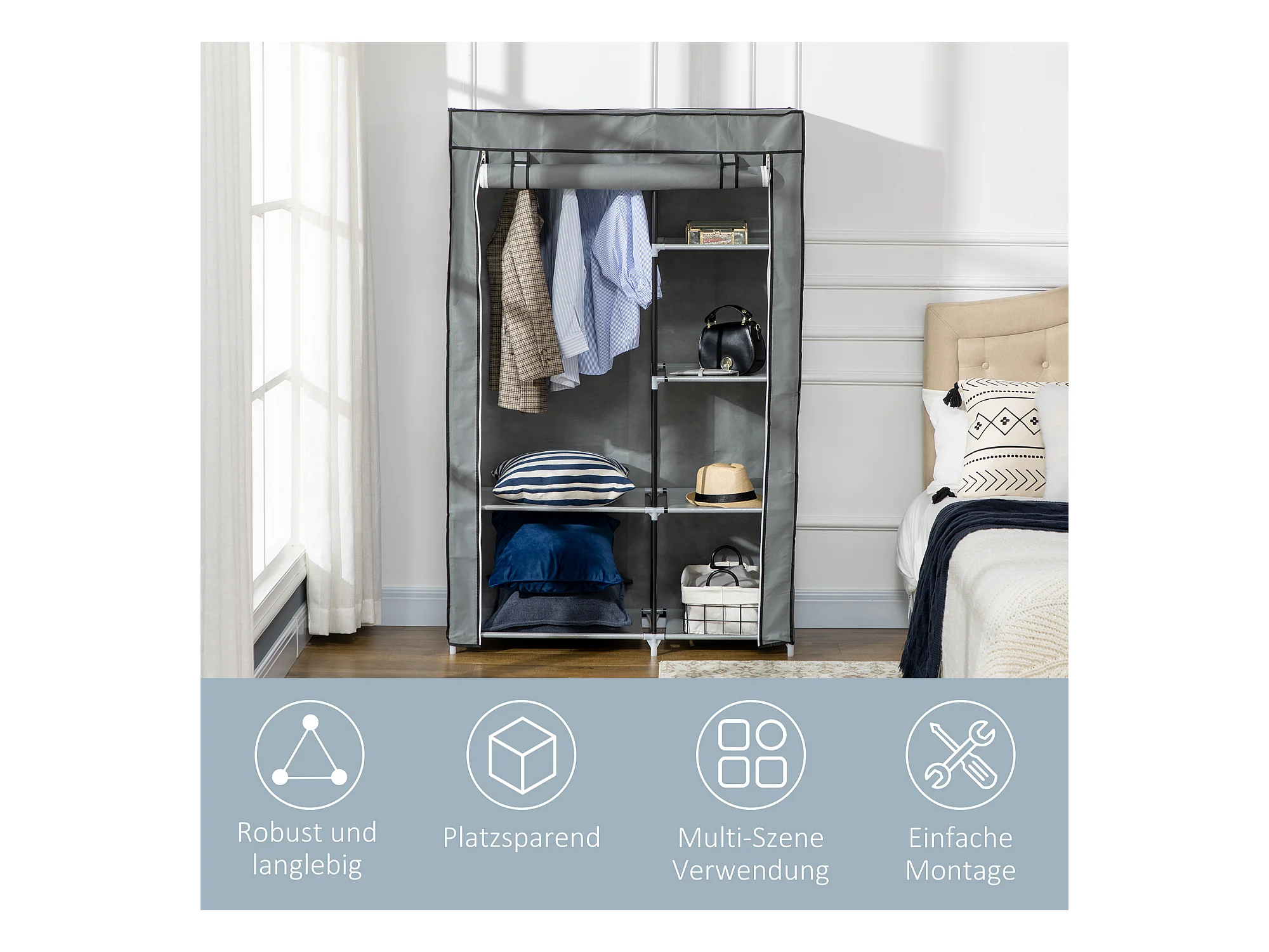 Armoire pliante en tissu gris foncé avec 8 étagères et tringle à vêtements – 125 x 43 x 162,5 cm, pratique et gain de place pour chambre