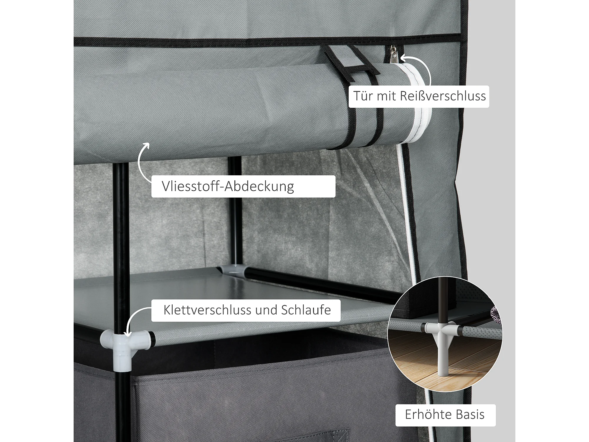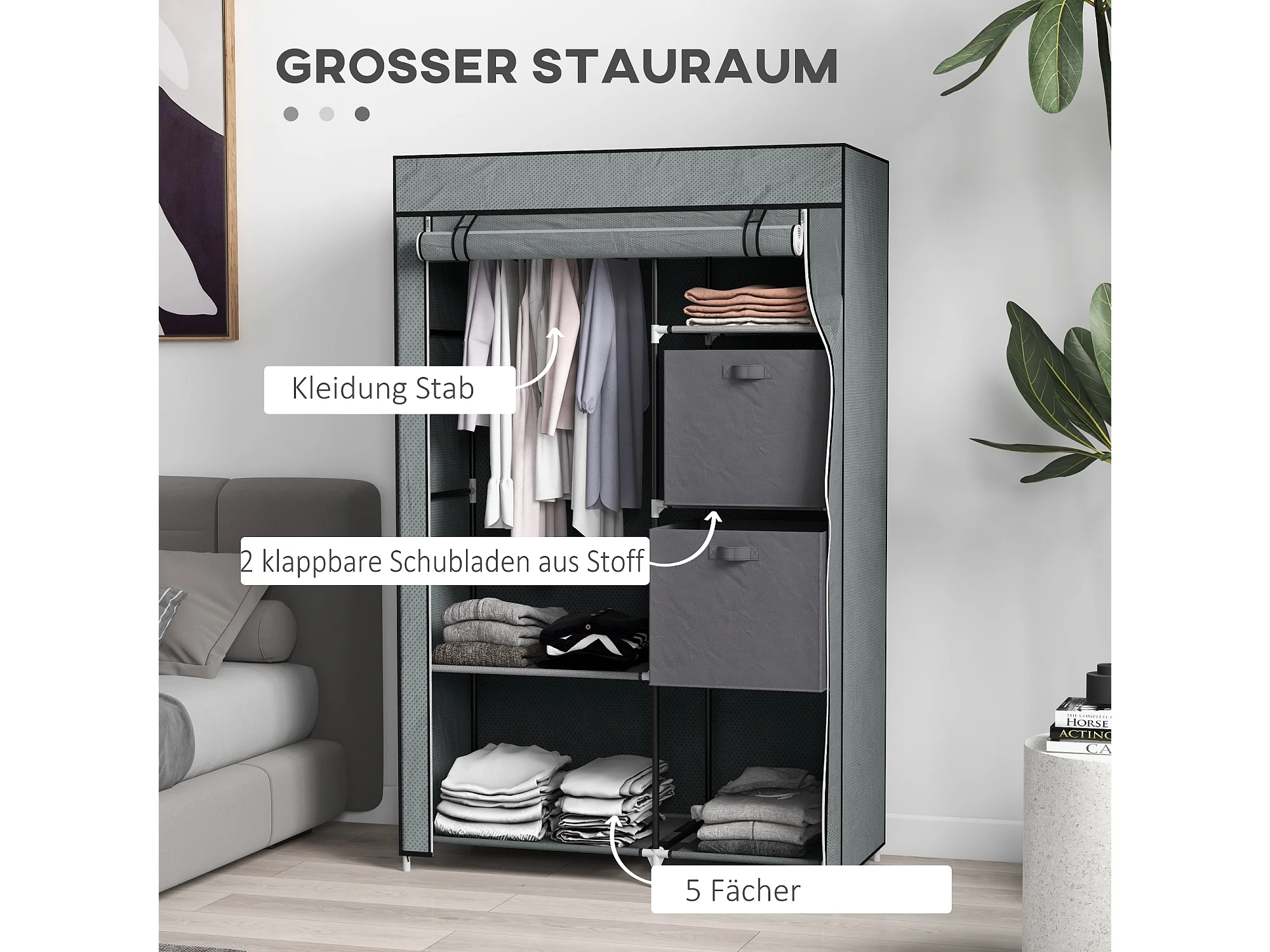 Armoire pliante en tissu gris foncé avec tiroirs, tringle et fermeture éclair – pratique et gain de place pour chambre ou couloir