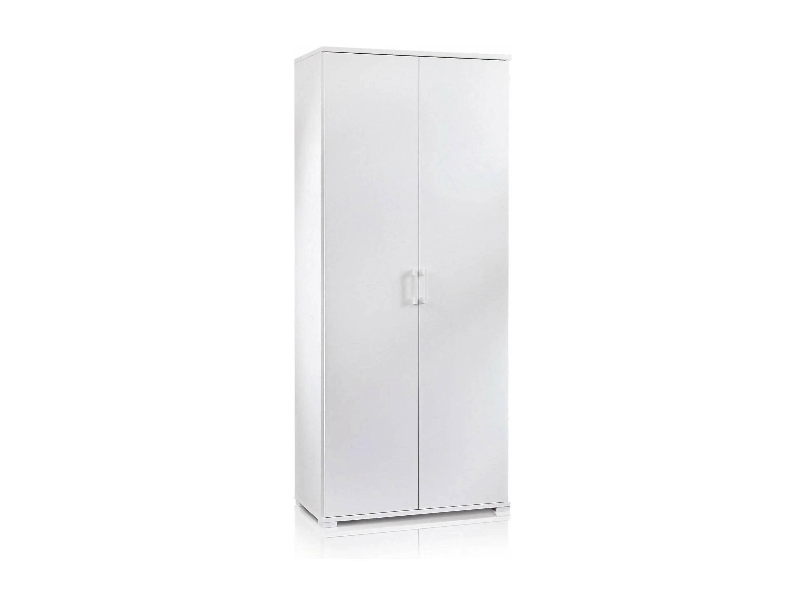 Armadio multiuso Alisso, Mobile lineare a 2 Ante battenti, Guardaroba a 4 ripiani regolabili, Scarpiera moderna, 100% Made in Italy, 90x45h195 cm, Bianco